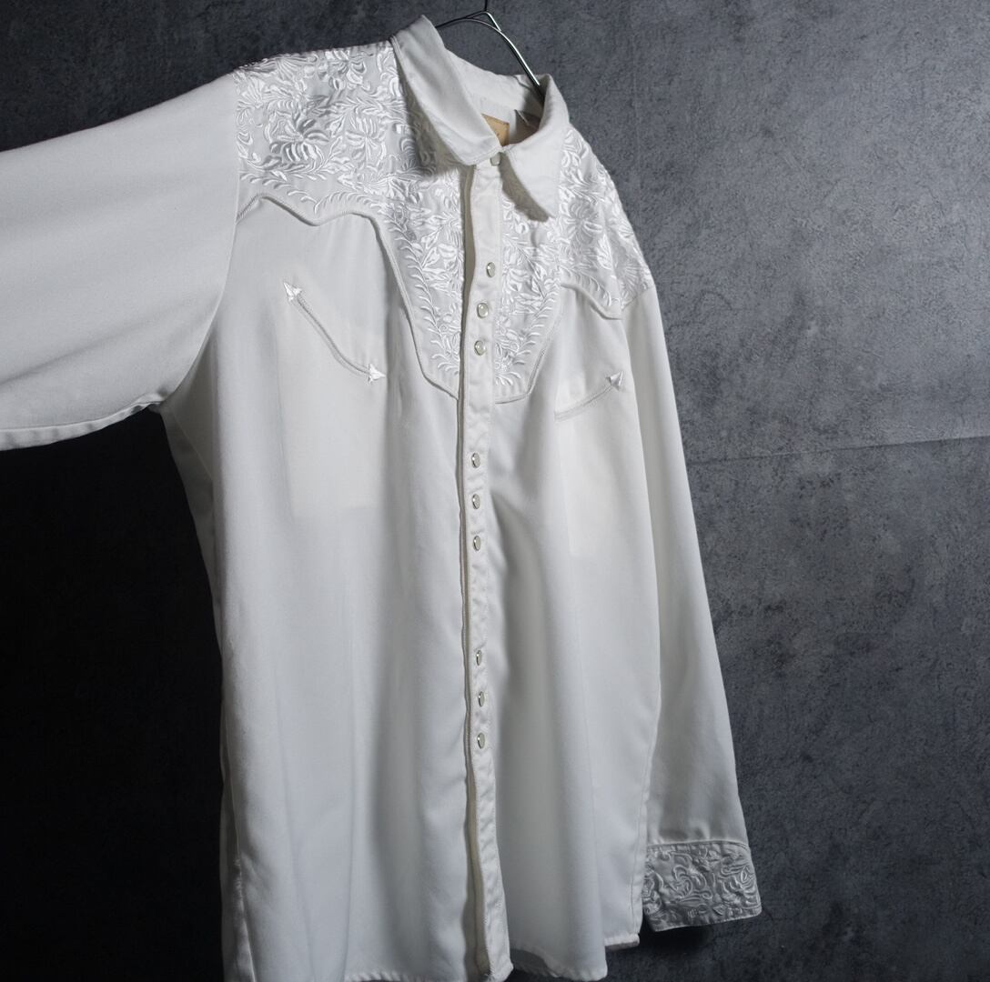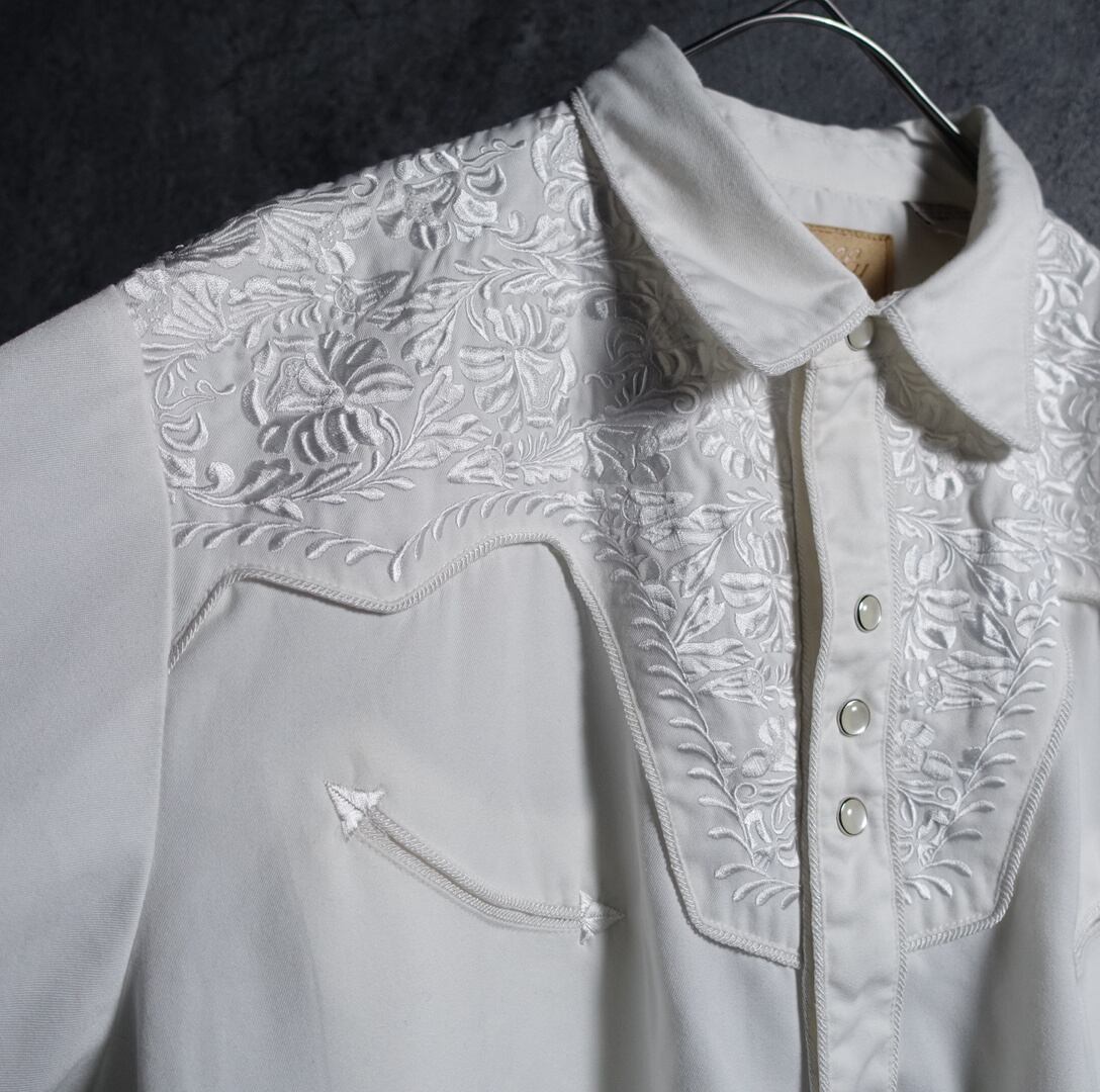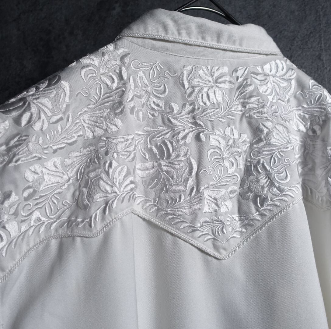 White Flower Motif Embroidered Western Shirt