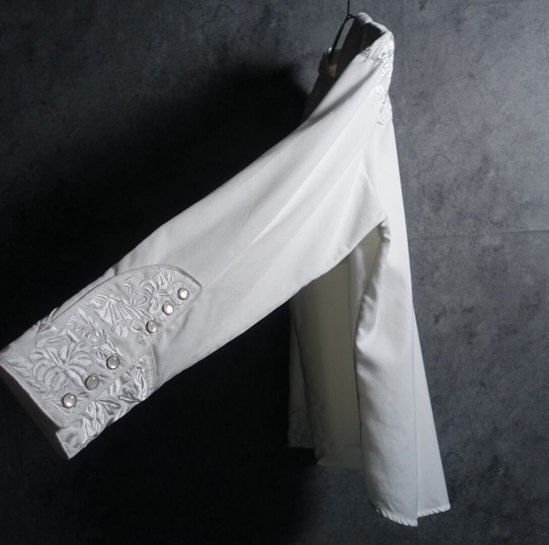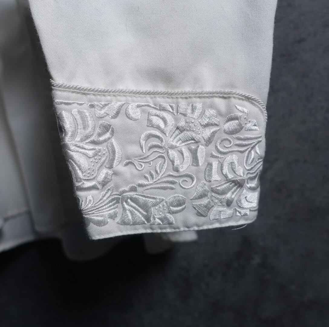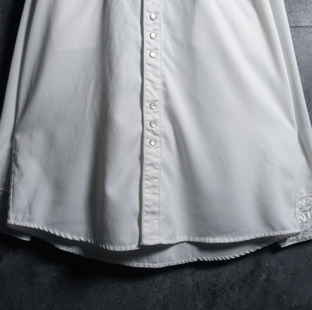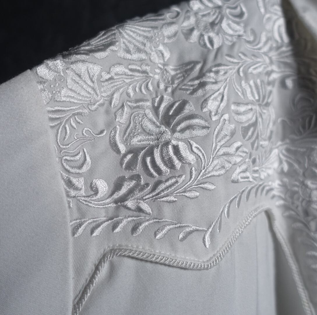 White Flower Motif Embroidered Western Shirt