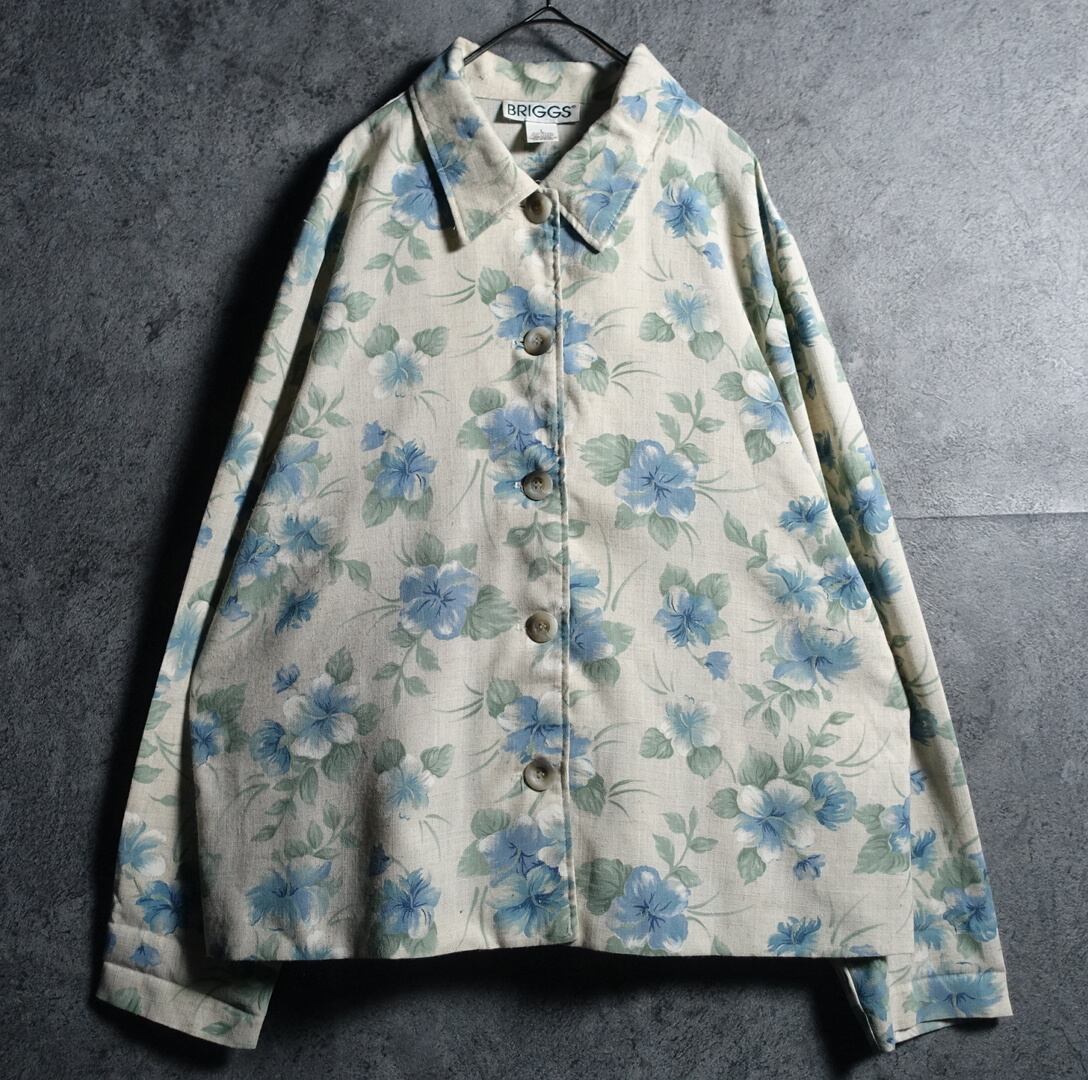 90s "BRIGGS" Ivory Flower Pattern Design Short Length Jacket