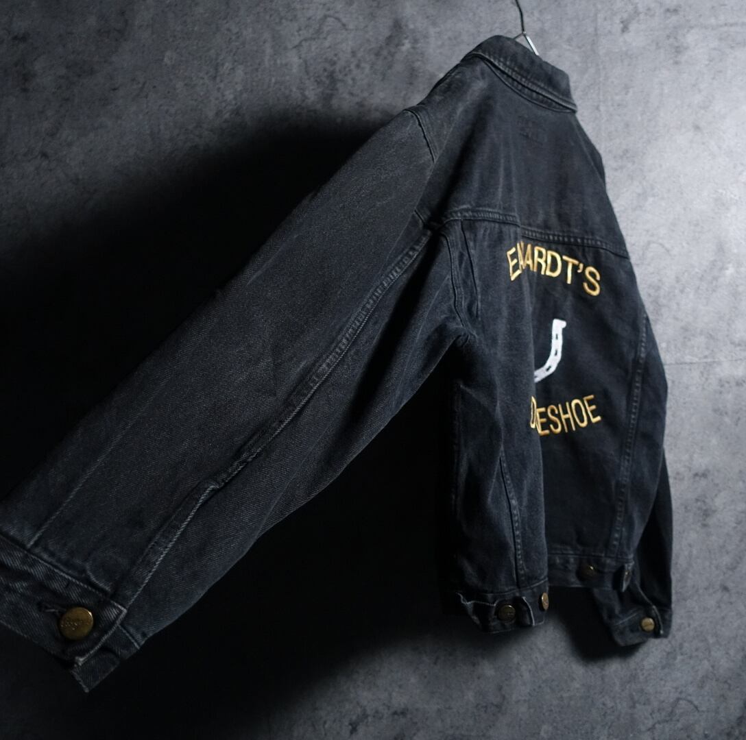 Black Denim Horseshoe Motif Embroidered Turker Jacket