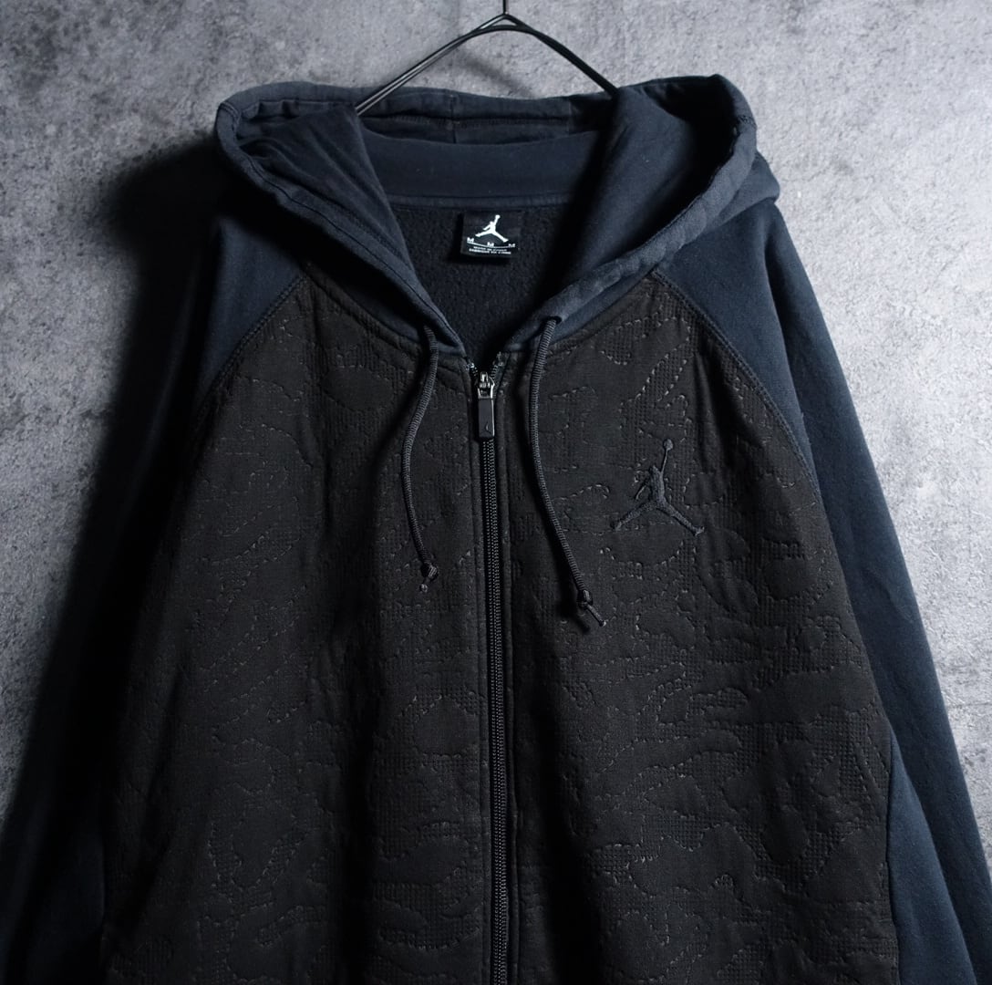 "Jordan" Black Logo Embroidered Design Sweat Zip Parka