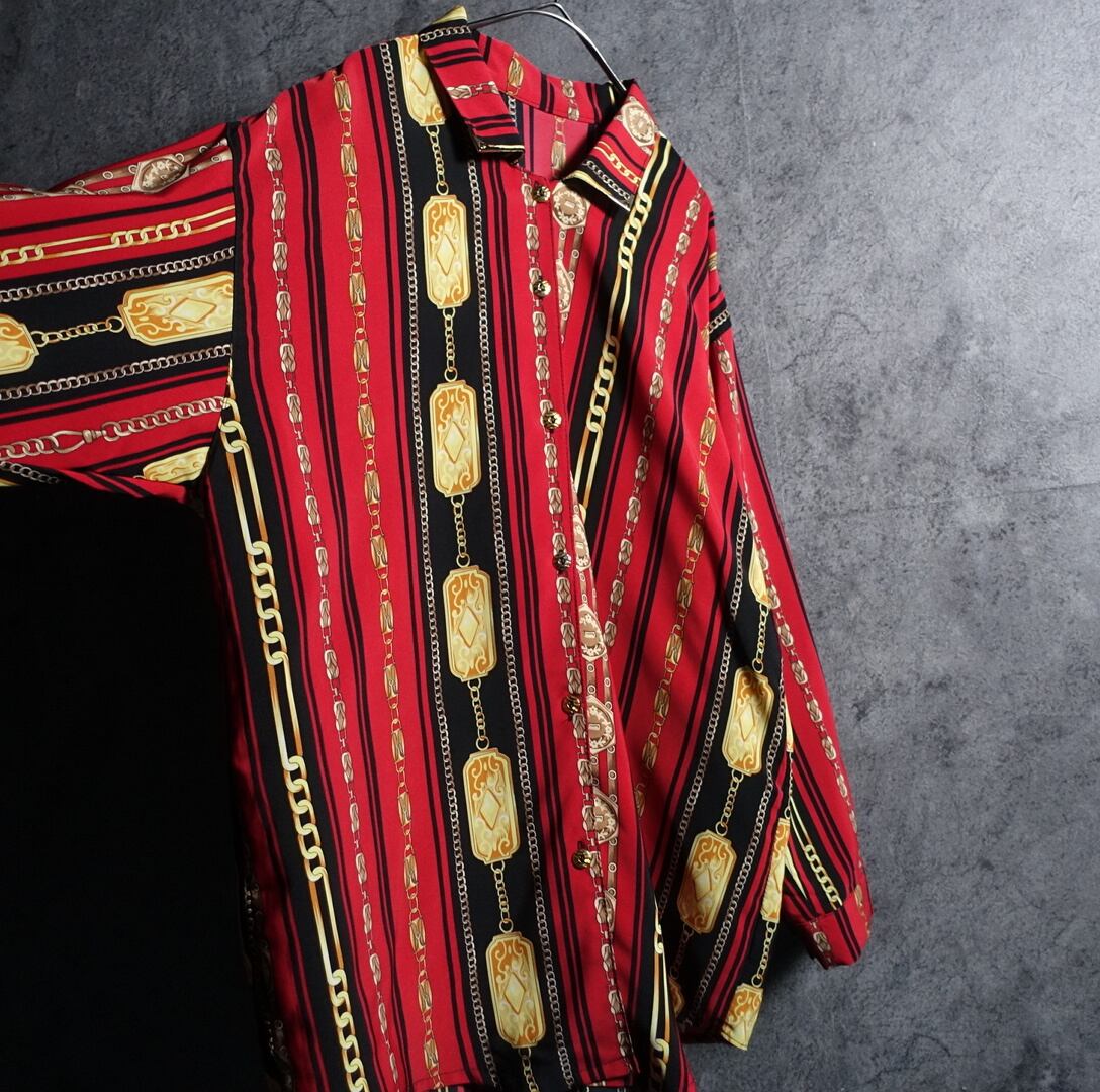 Multicolor Scarf Pattern Gold Embellished Design Shirt