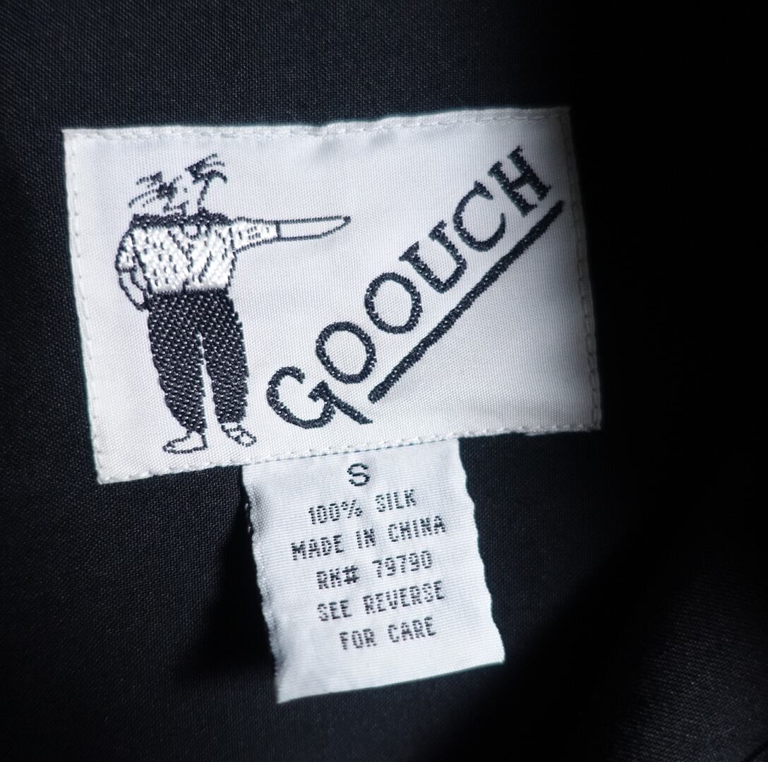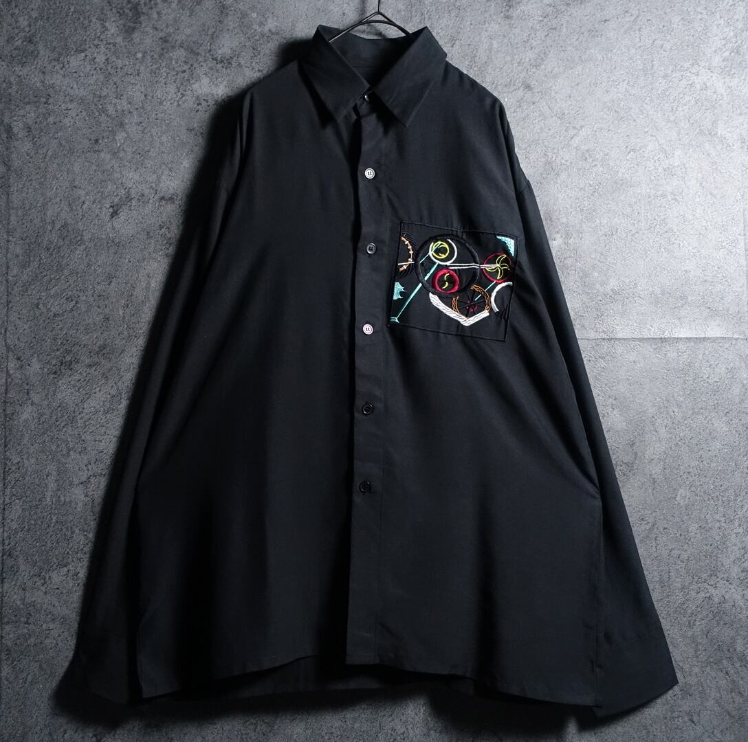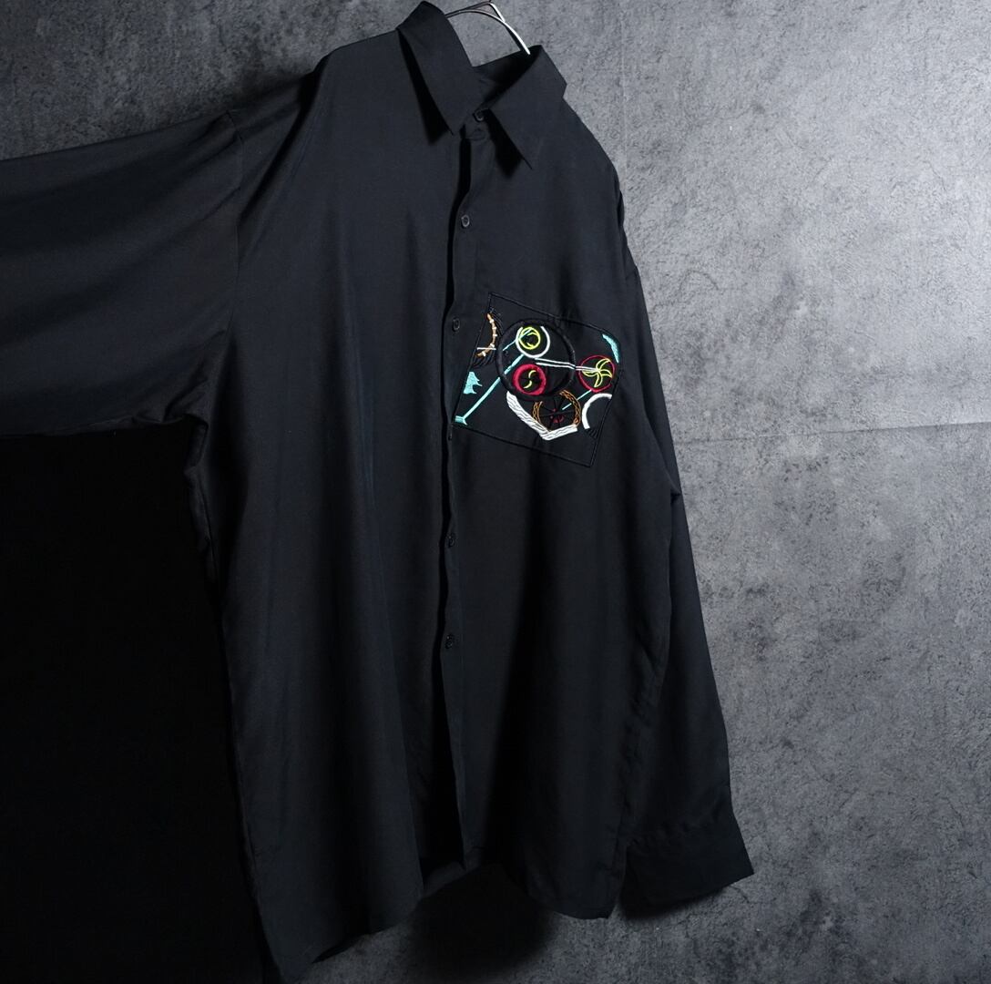 90s "GOOUCH" Black Geometric Motif Embroidered Design Silk Shirt