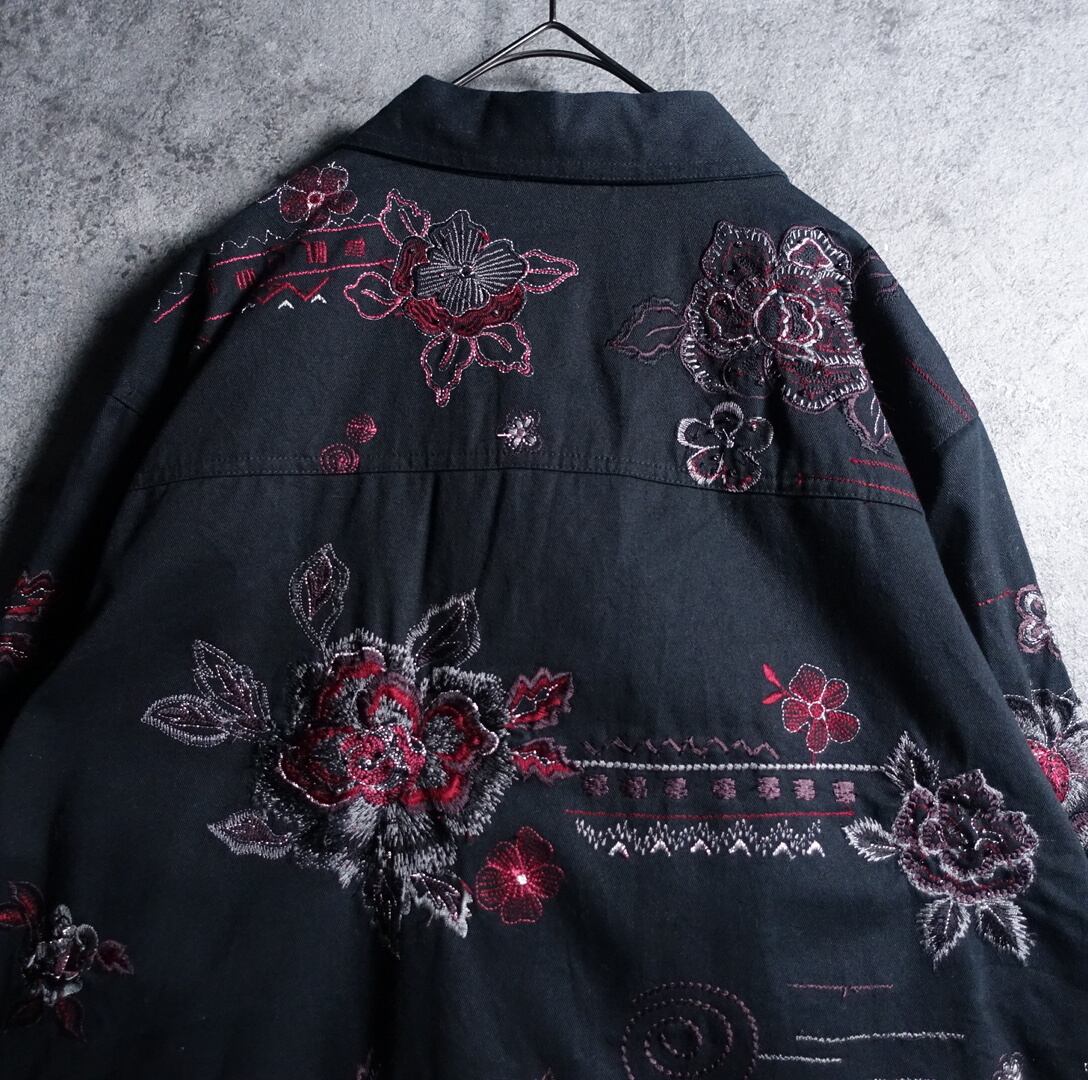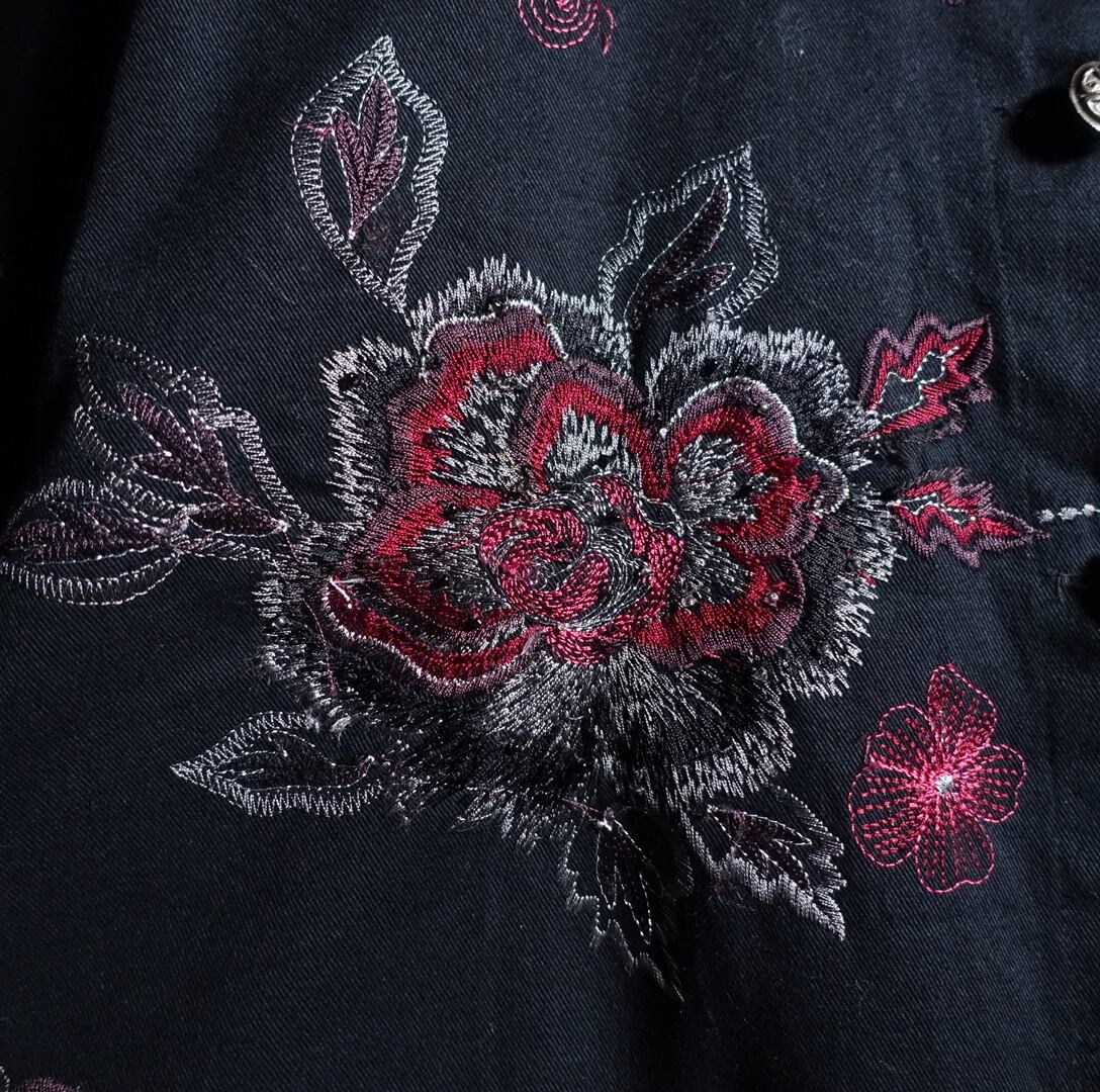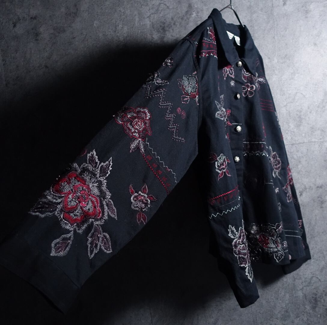 Black Various Flower & Geometric Motifs Embroidered Design Jacket