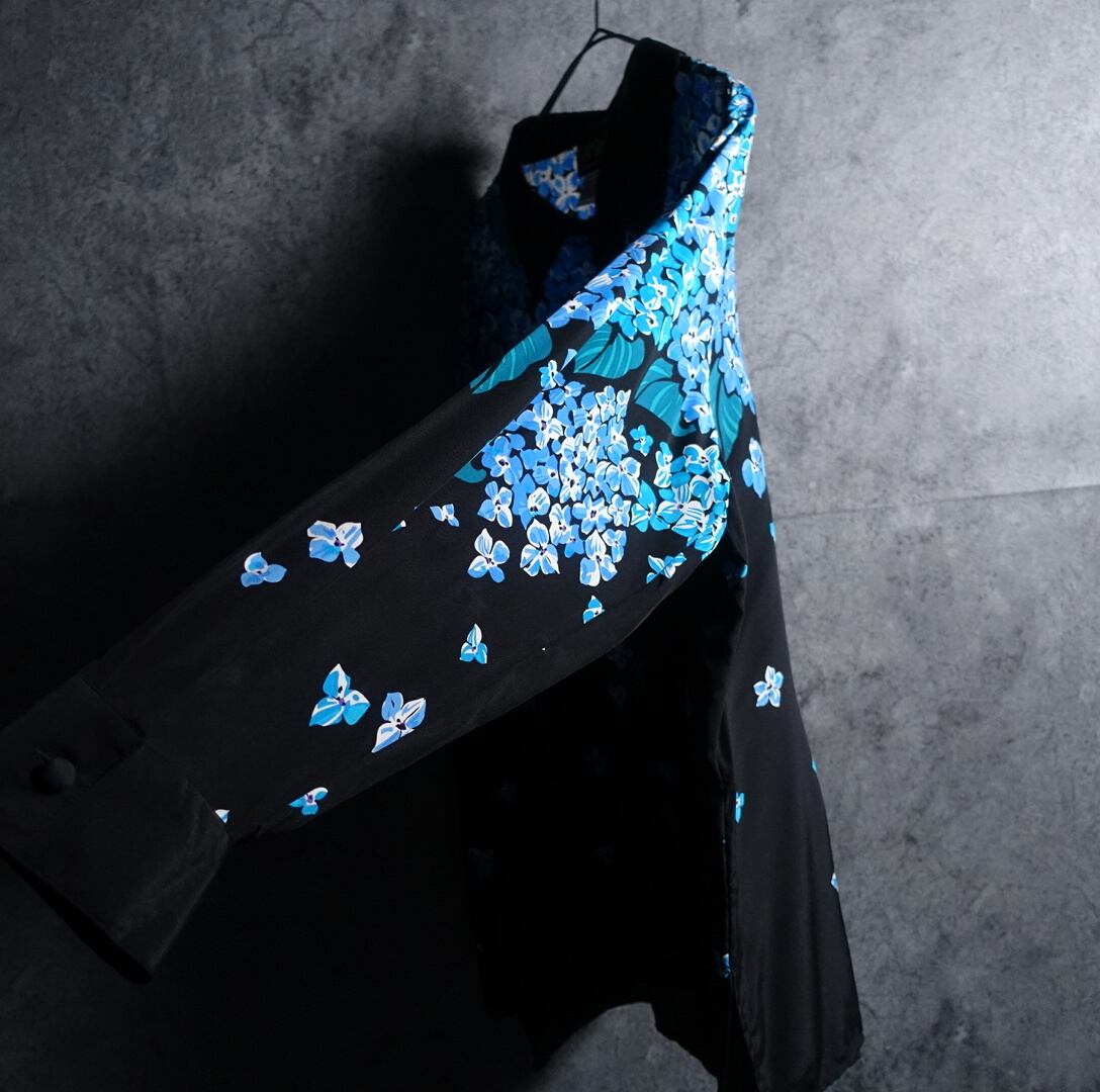 "Bob Mackie" Black Flower motif embellished design silk shirt