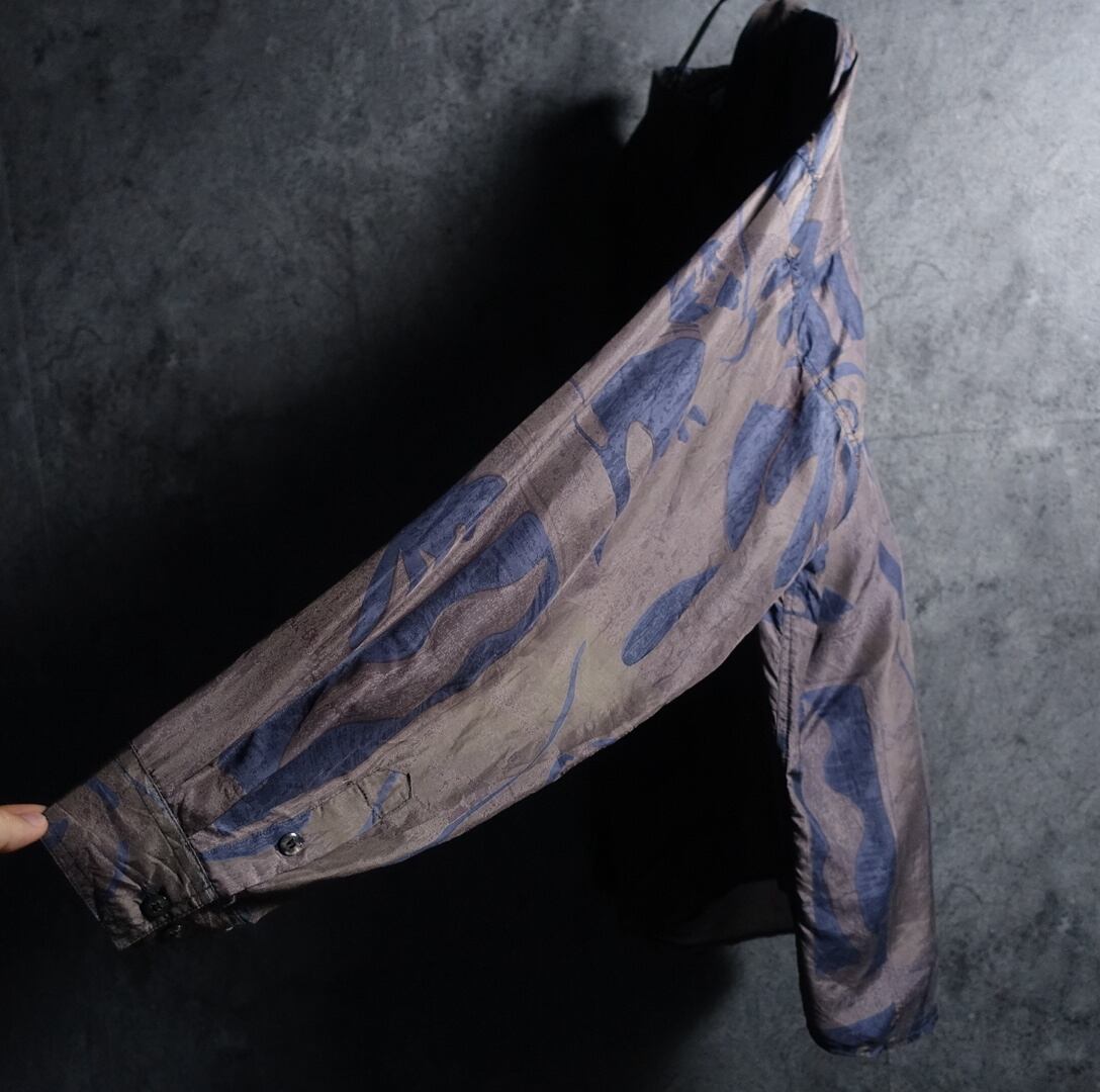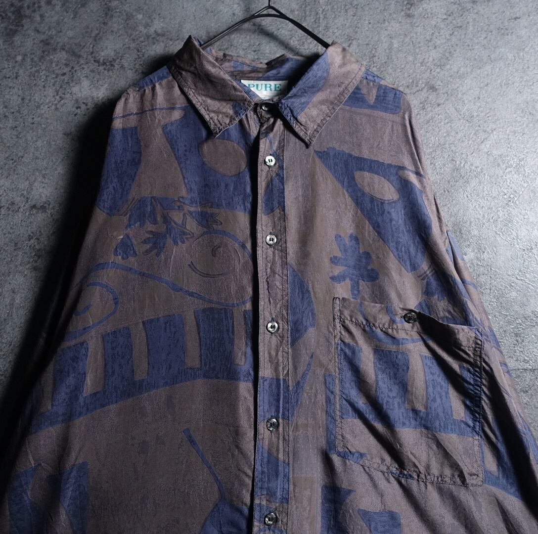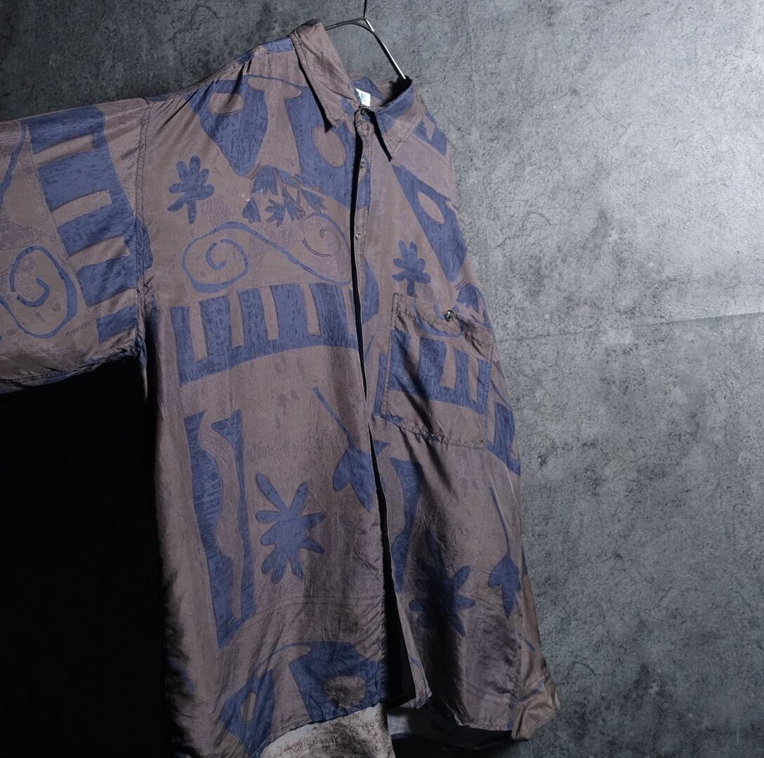 Multicolor Abstract Motif Design Silk Shirt
