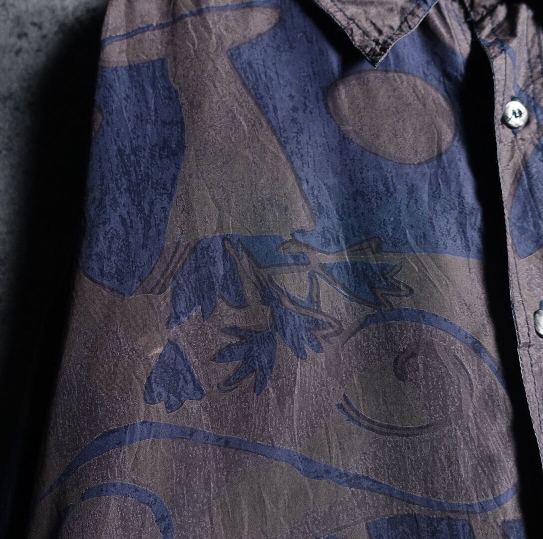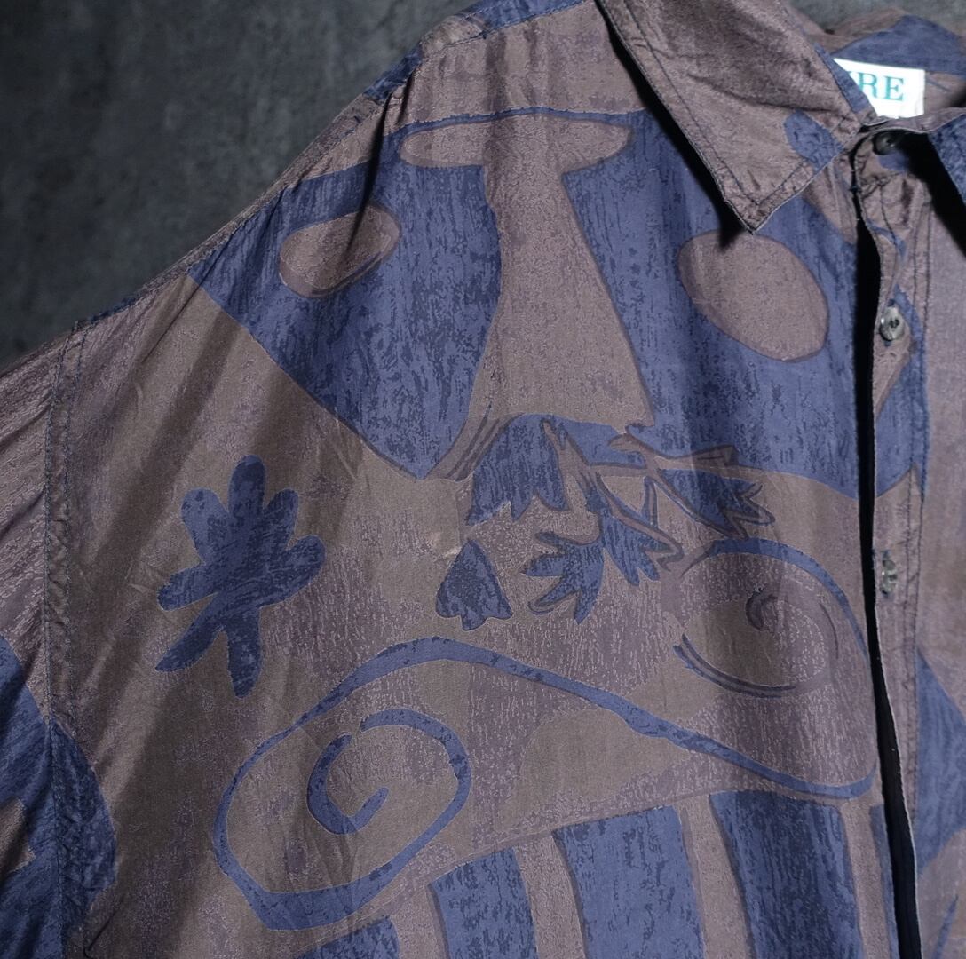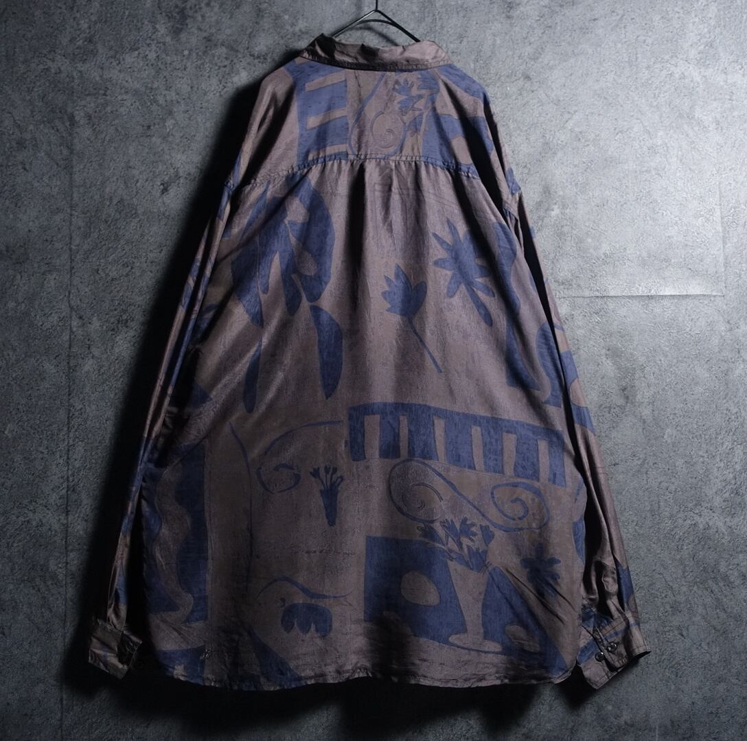 Multicolor Abstract Motif Design Silk Shirt