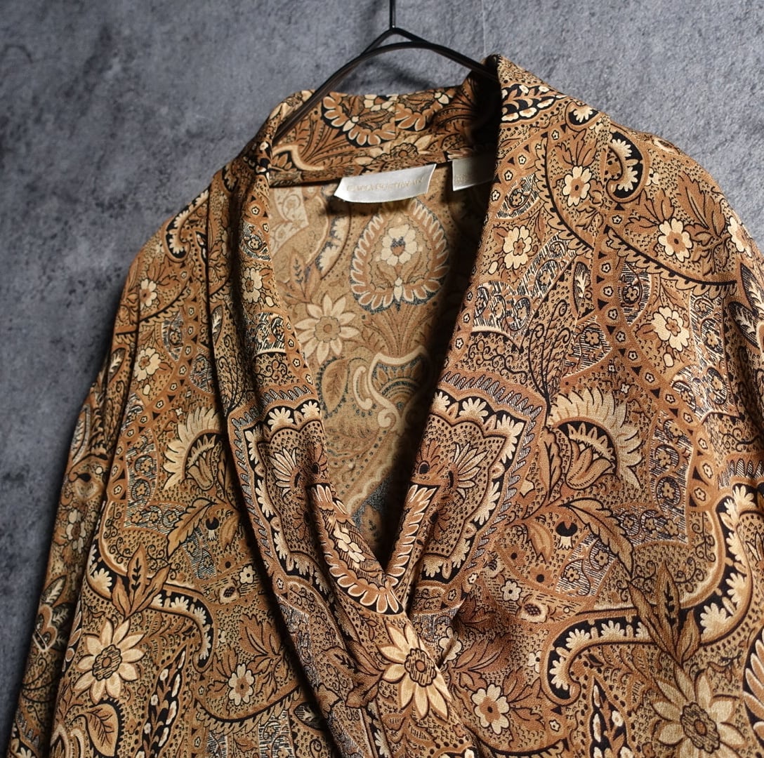Brown Flower Pattern Design Cache-coeur Silk Shirt