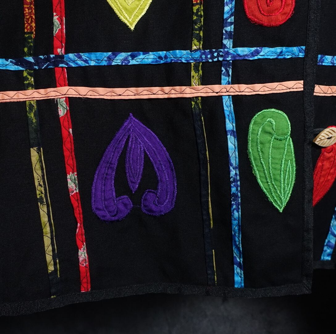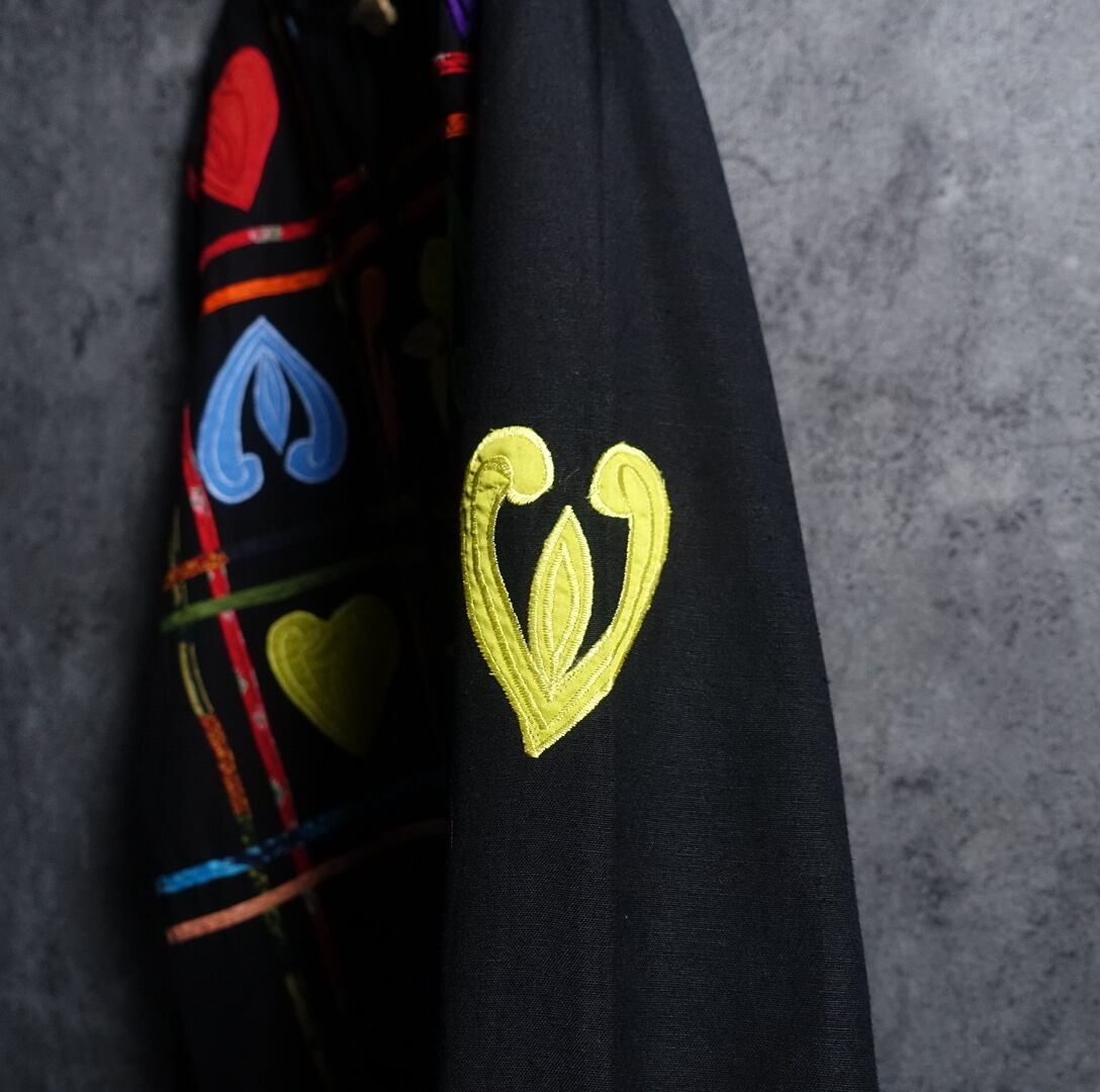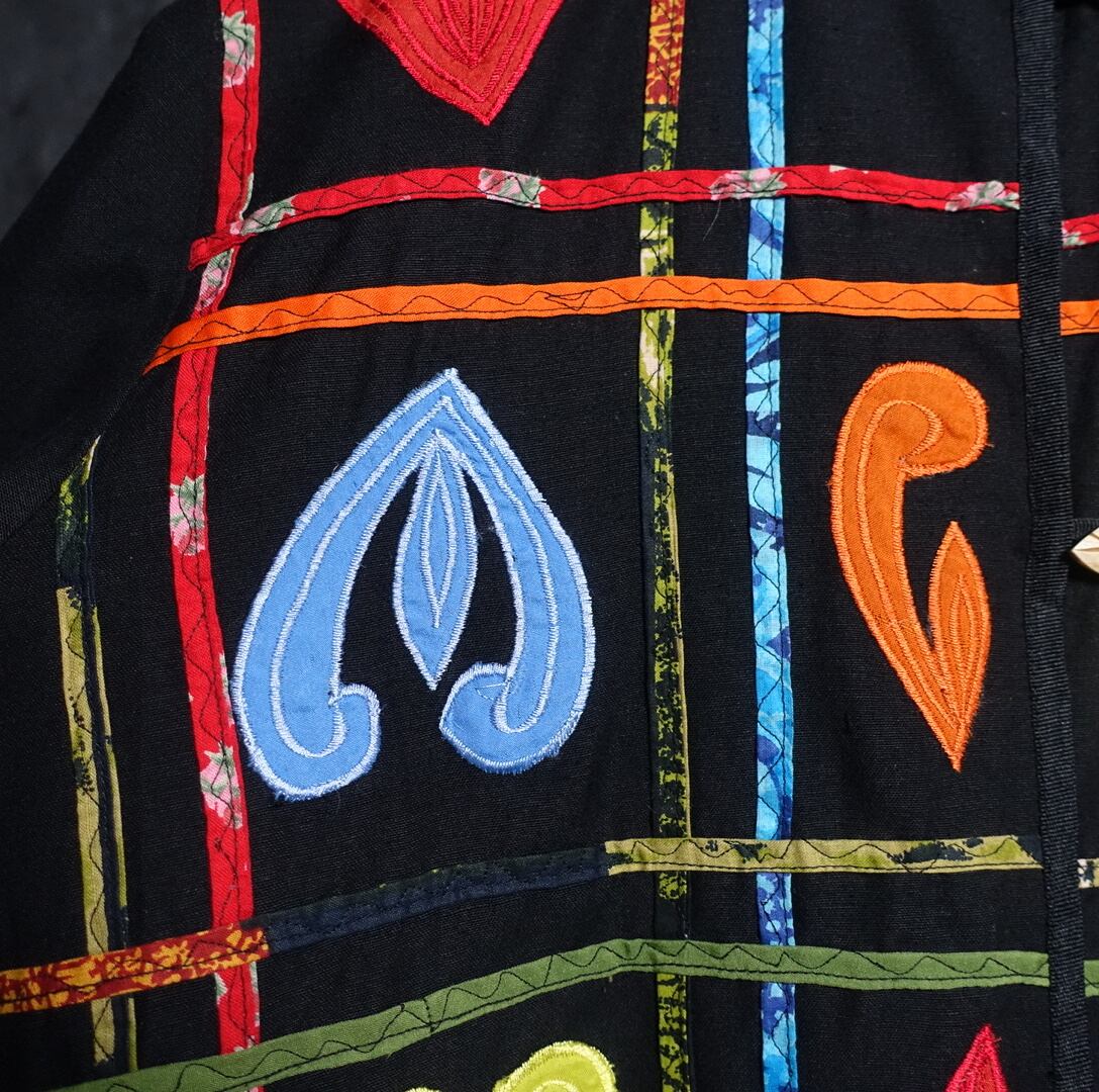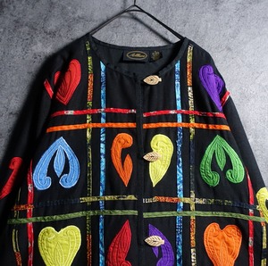 Black Various Motifs Embroidered Design No-collar Jacket