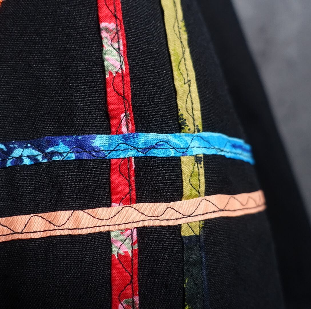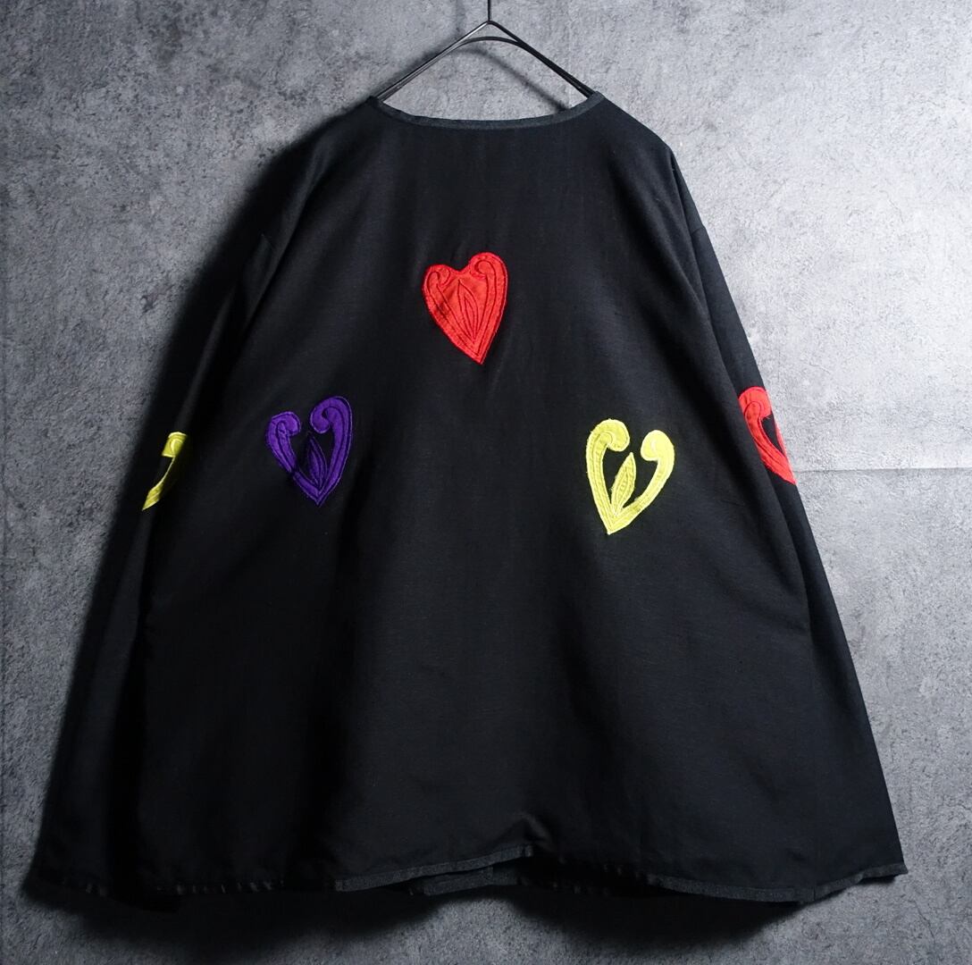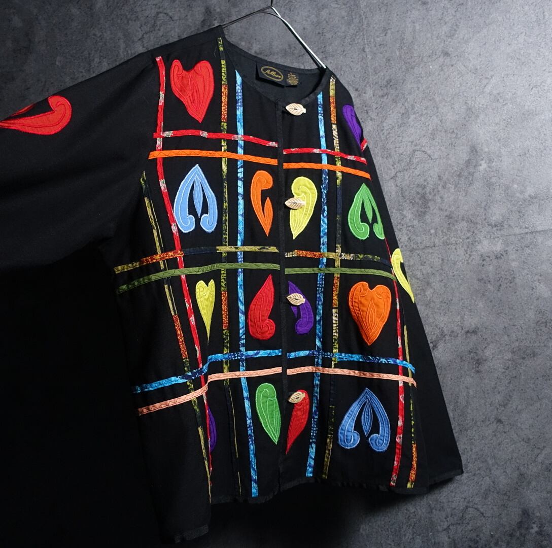Black Various Motifs Embroidered Design No-collar Jacket