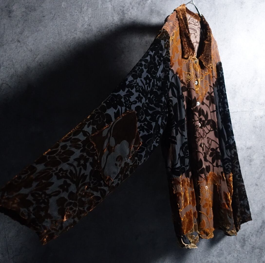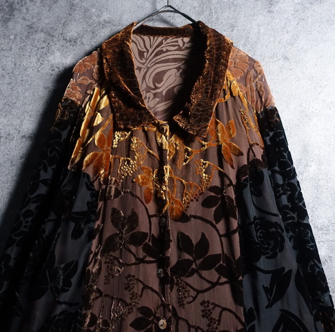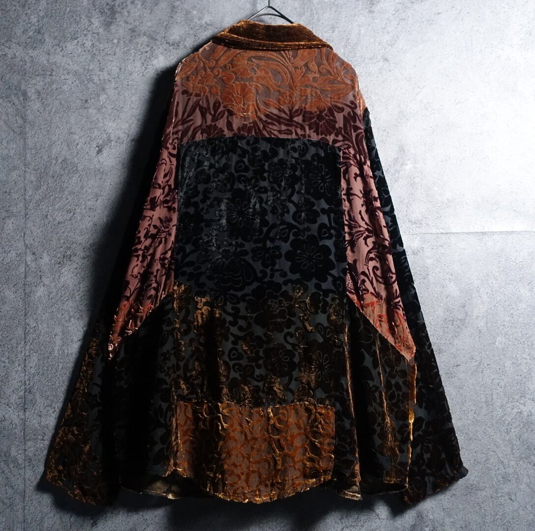 Multicolor Botanical Design Patchwork Velour See-Through Shirt