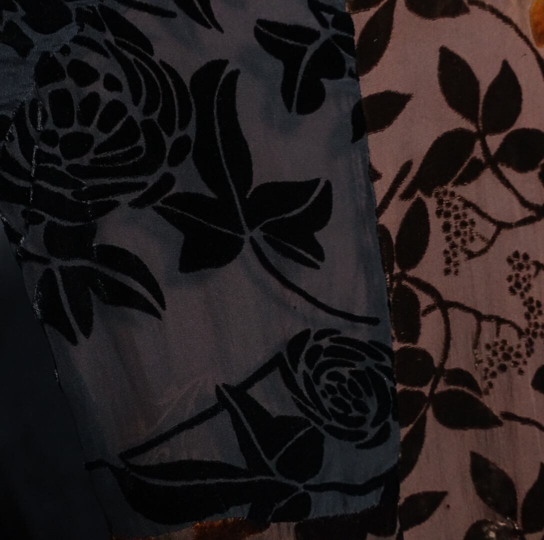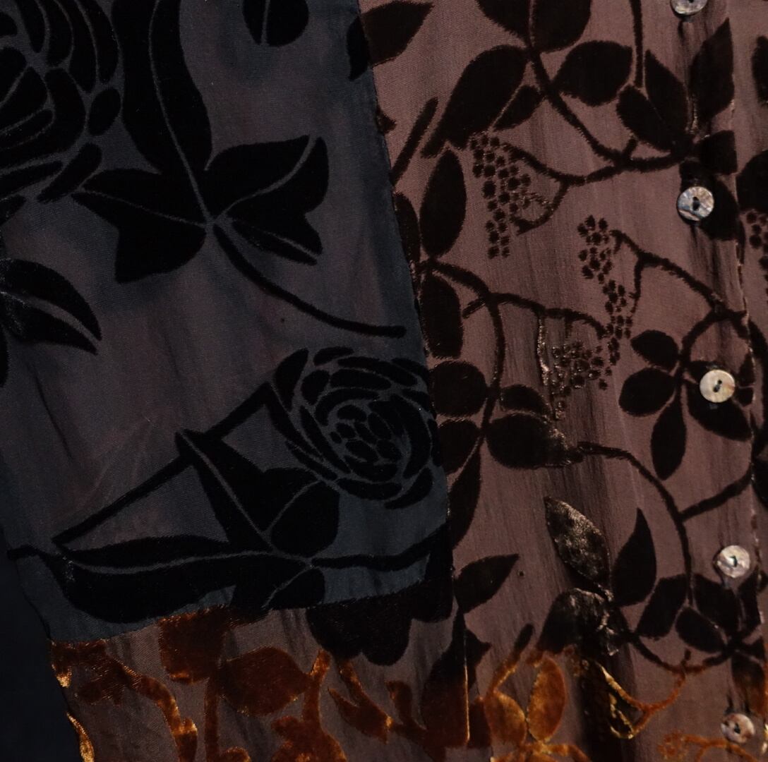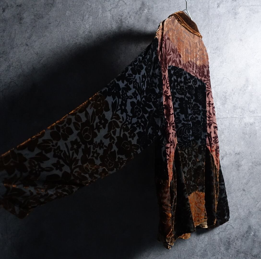 Multicolor Botanical Design Patchwork Velour See-Through Shirt