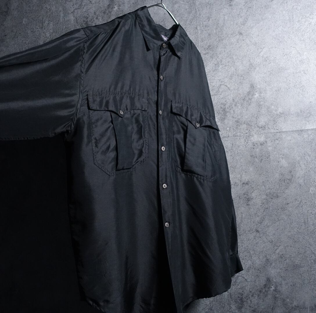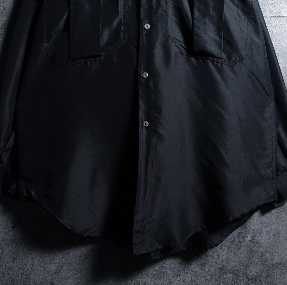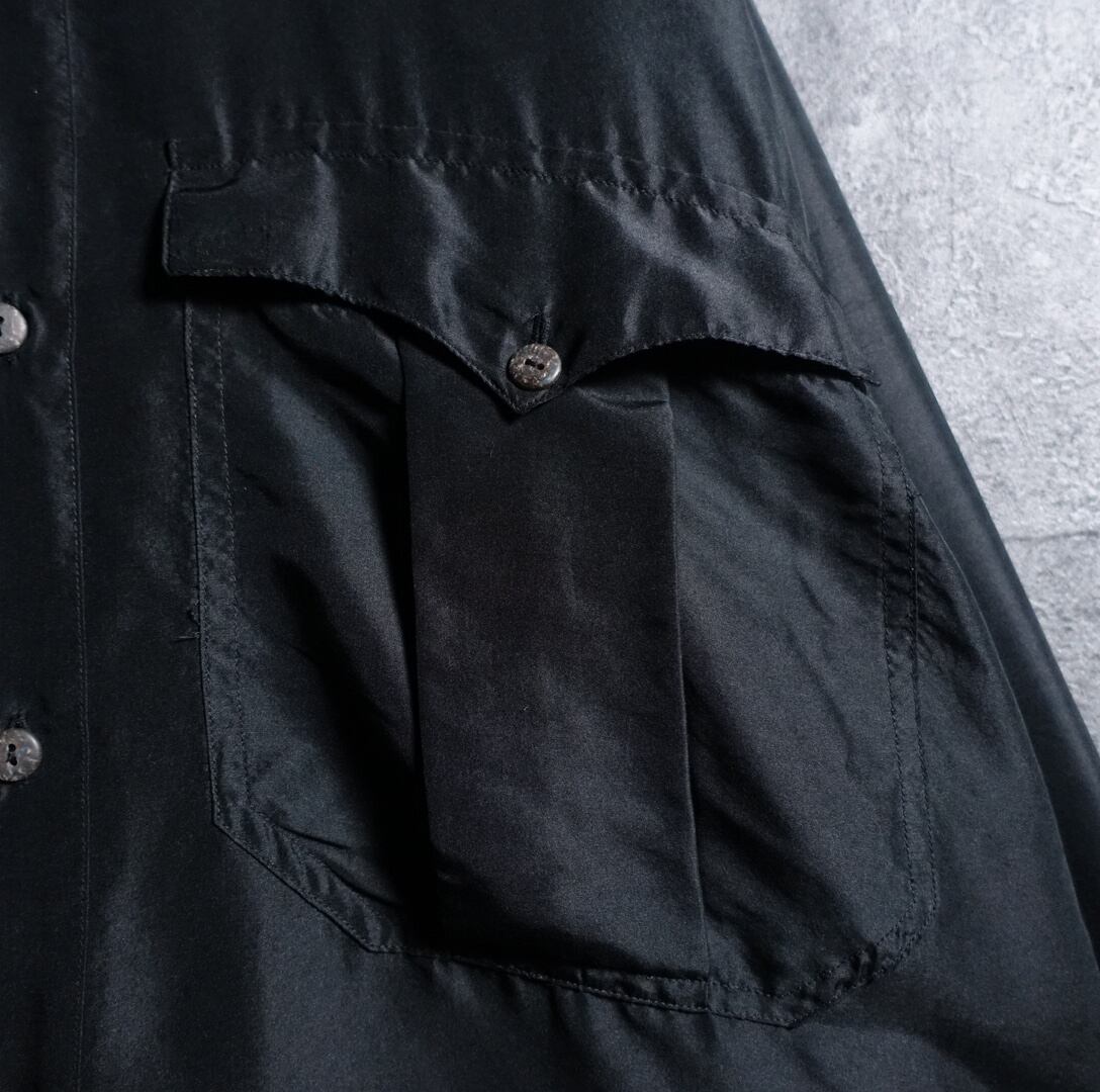 Black Double Pocket Design Silk L/S Shirt