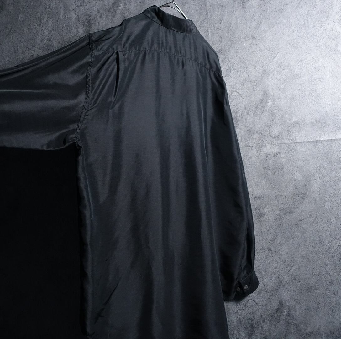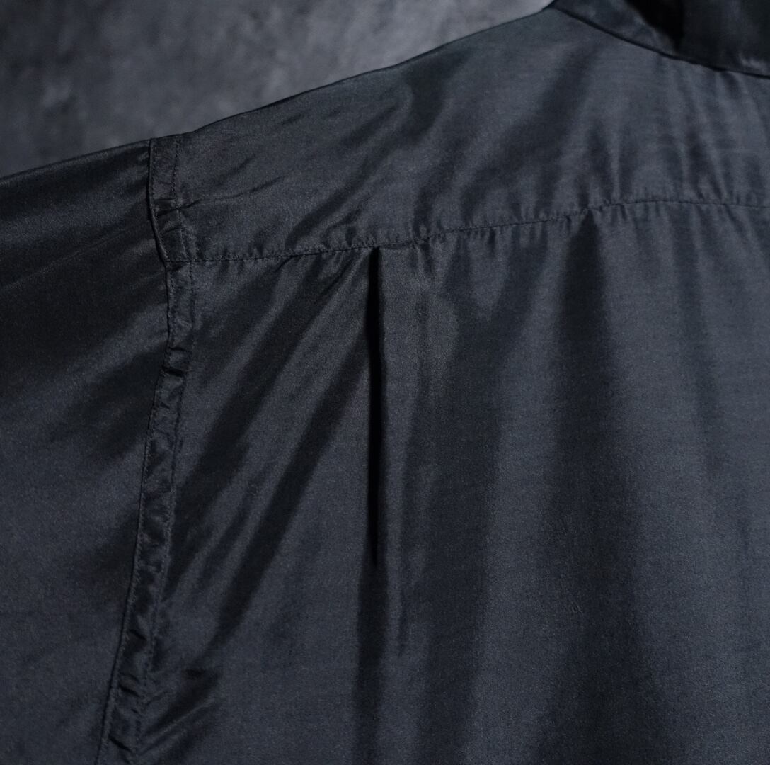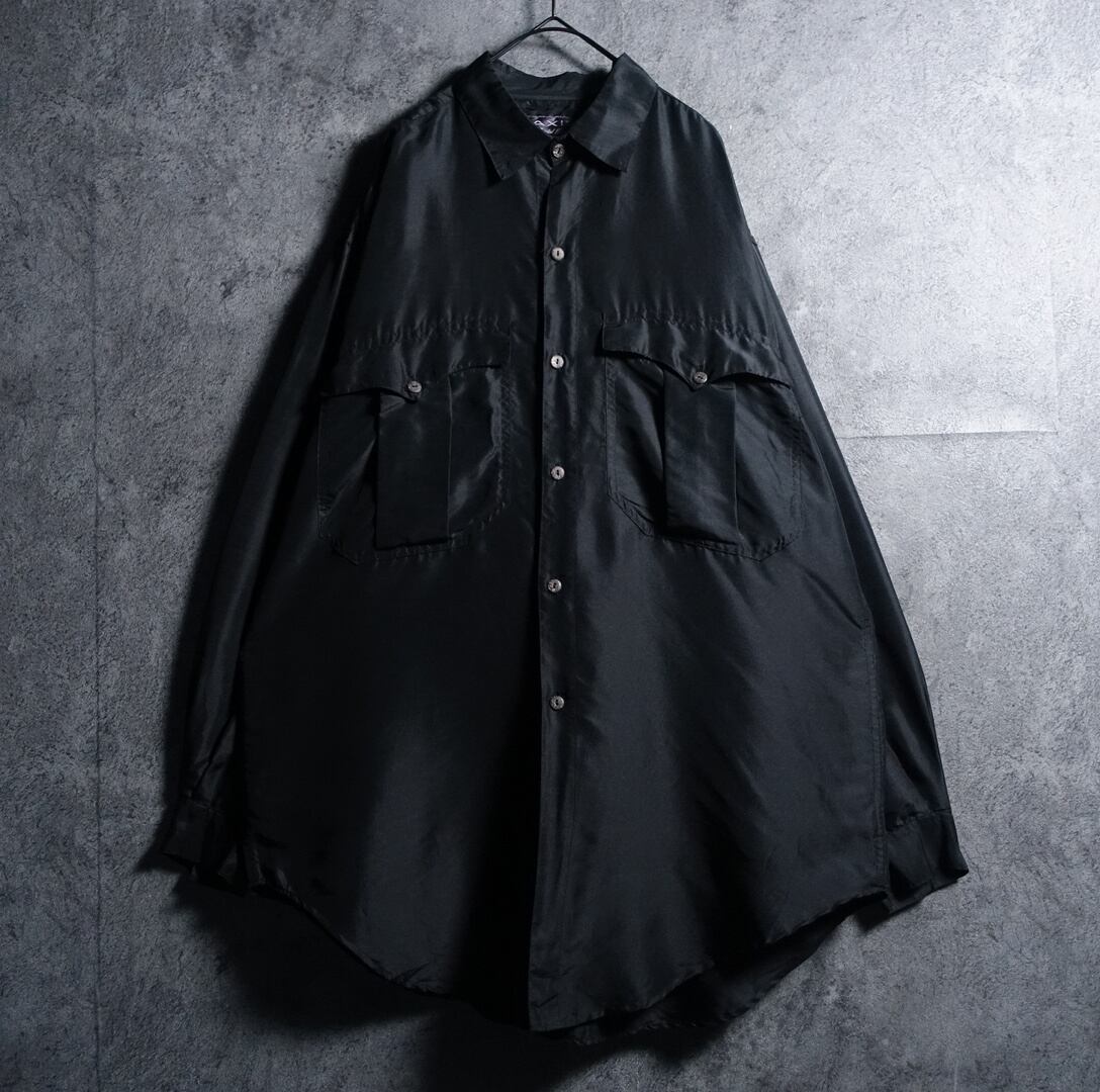 Black Double Pocket Design Silk L/S Shirt