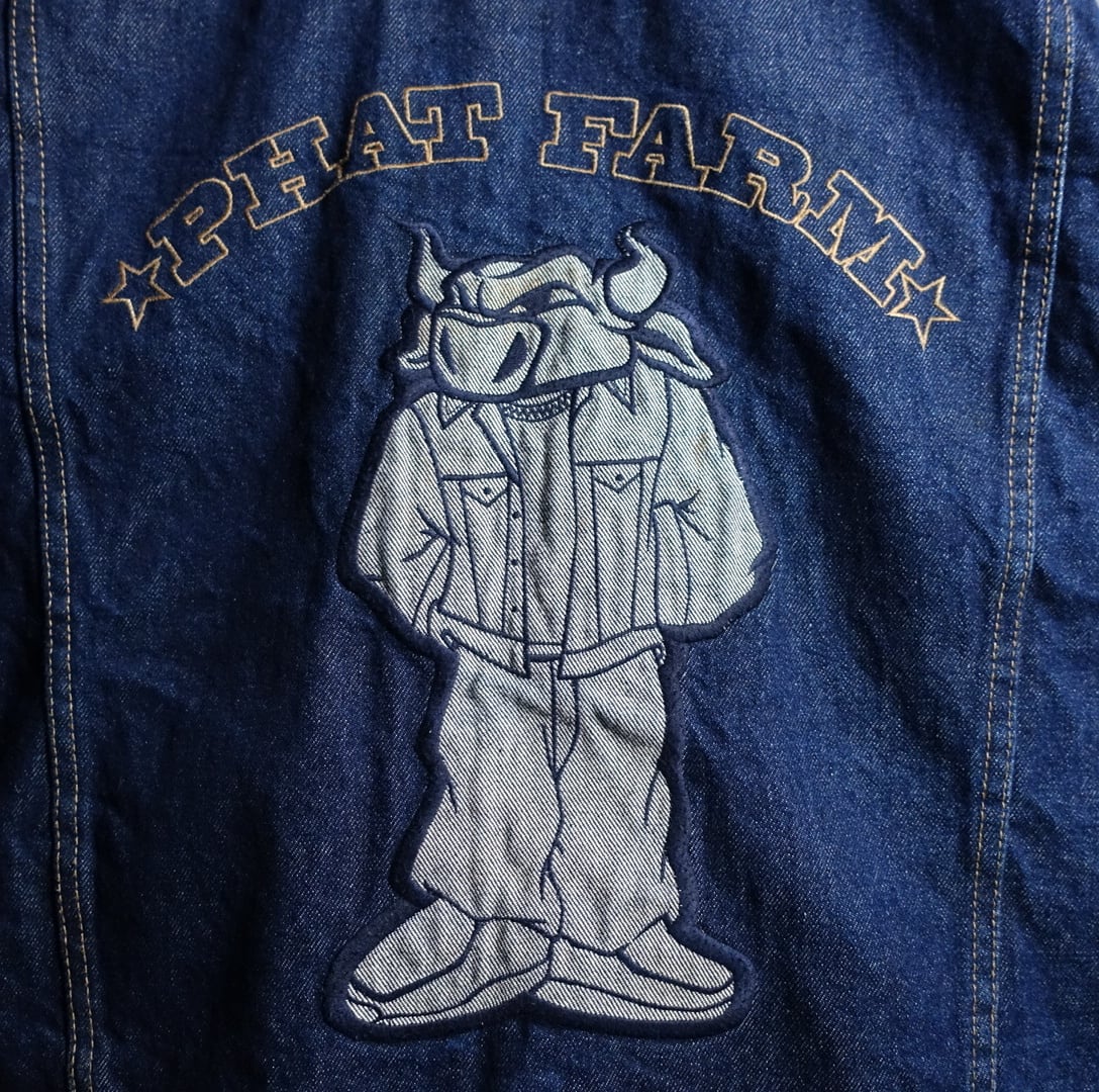 90s "PHAT FARM" Denim Logo Embroidered Design Trucker Jacket