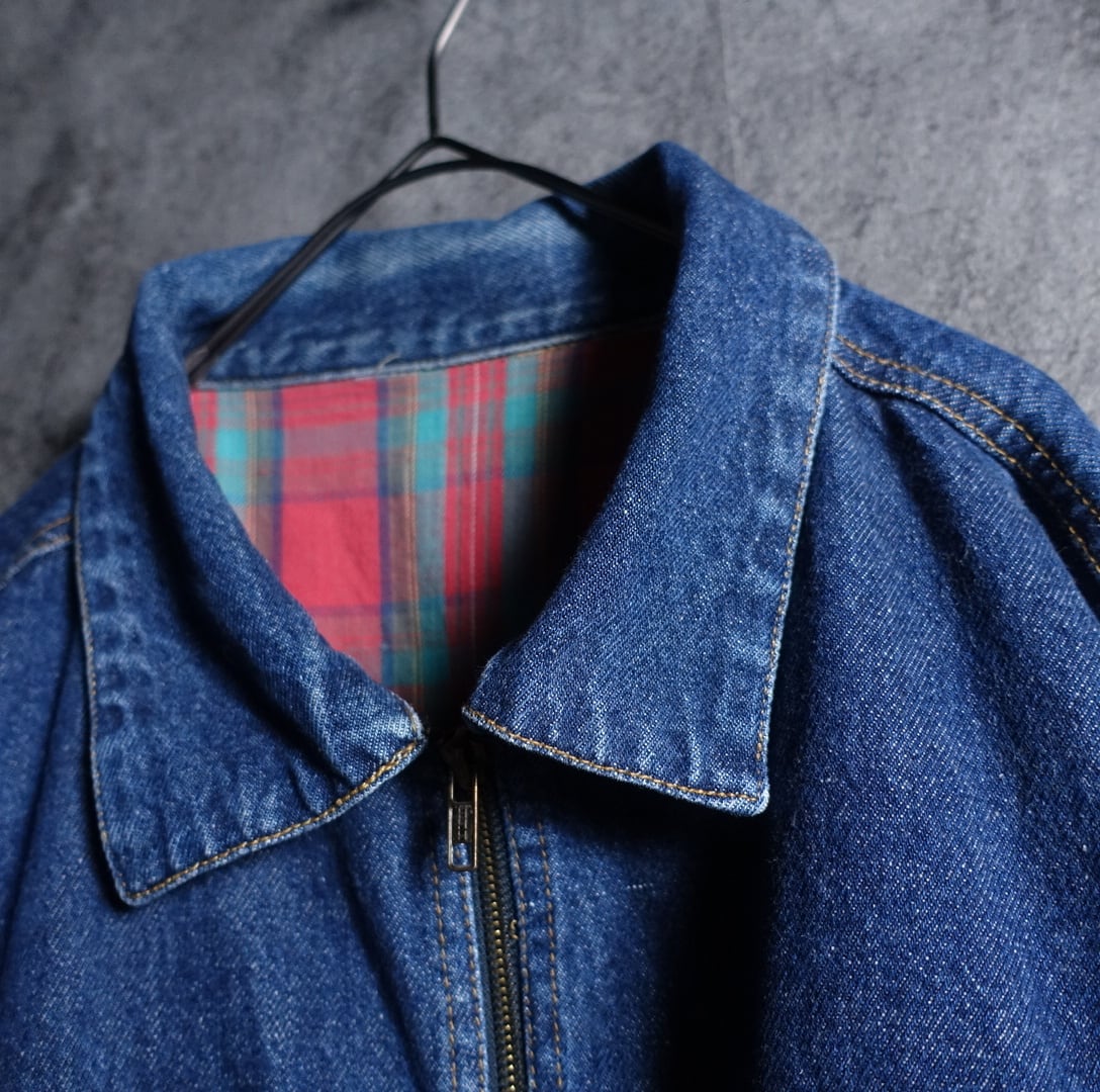 Denim Swing Top Type Check Desgin Zip Trucker Jacket