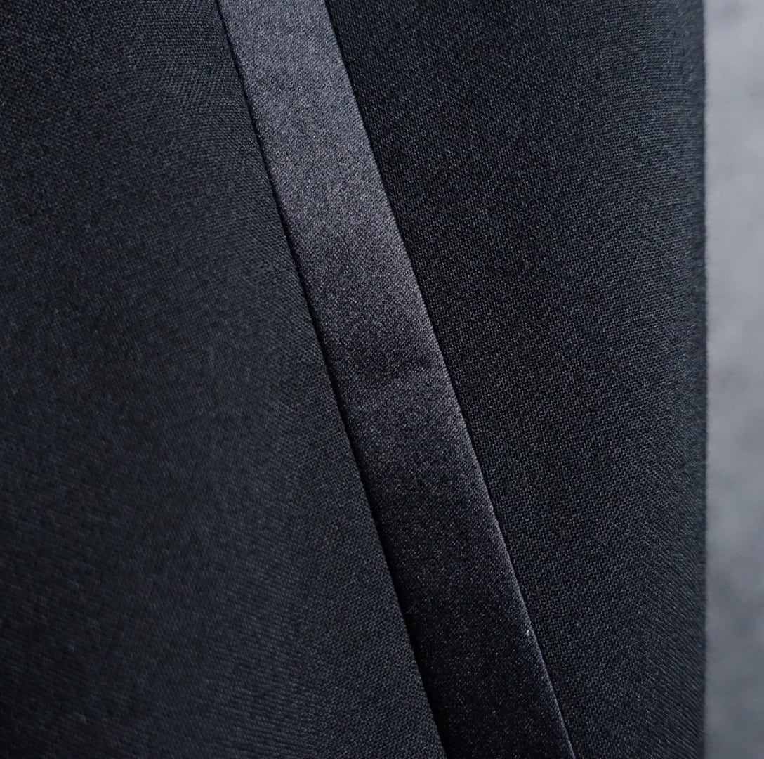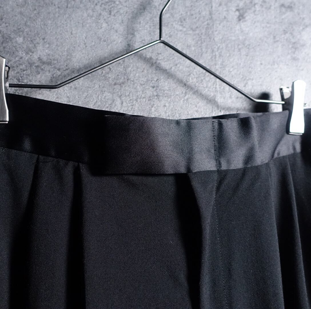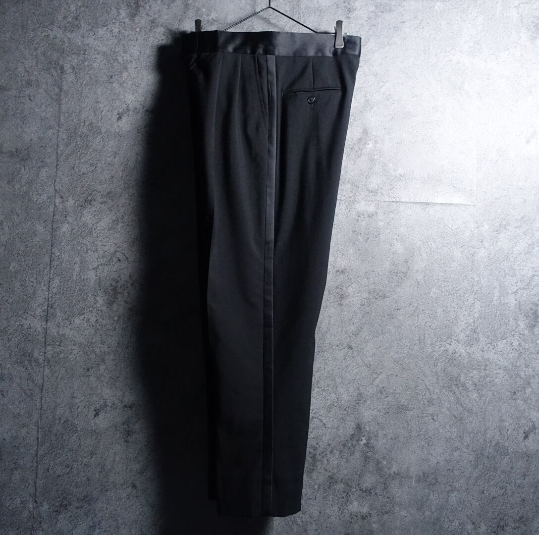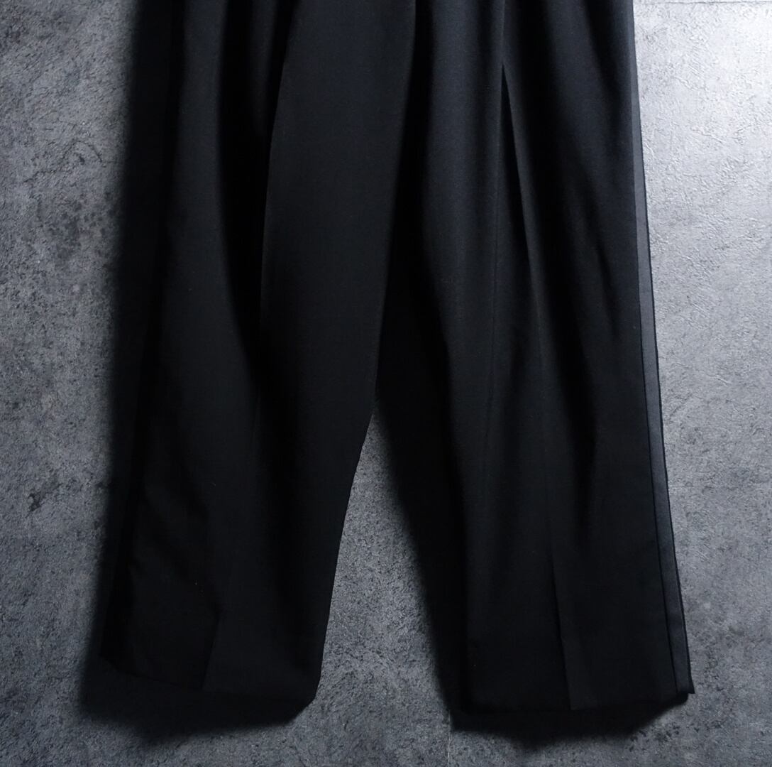 Black Satin Side Line Design 2-Tuck Wide Slacks
