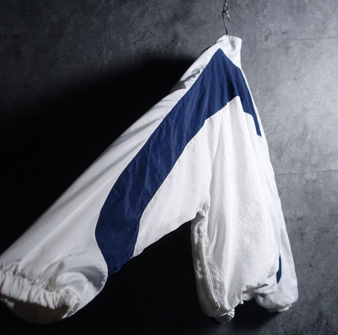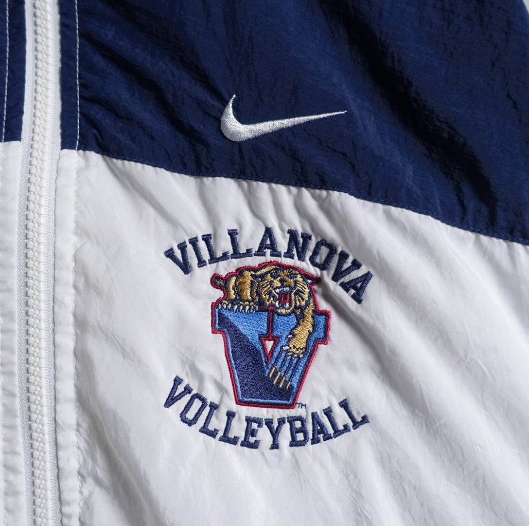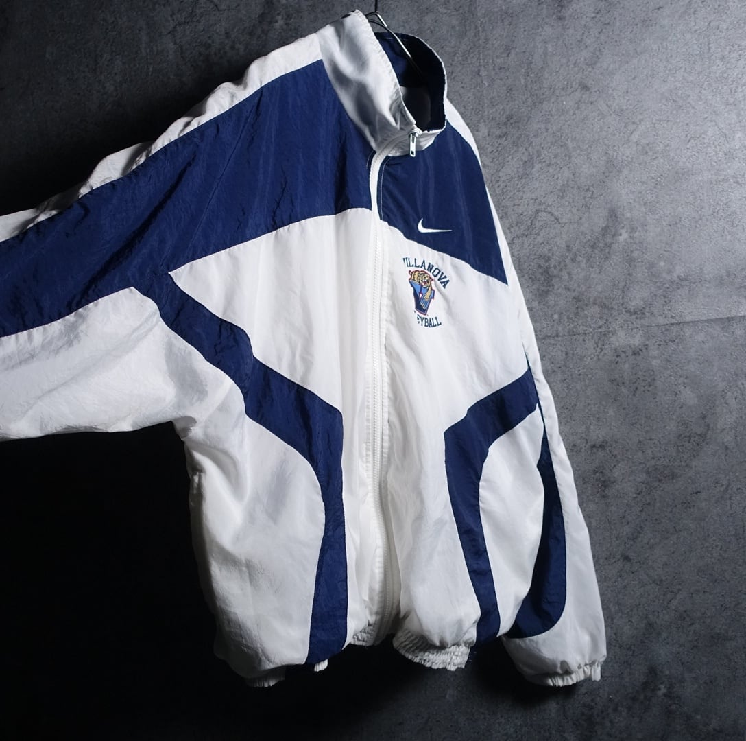 90s "NIKE" White & Navy Logo Embroidered Design Nylon Track Jacket