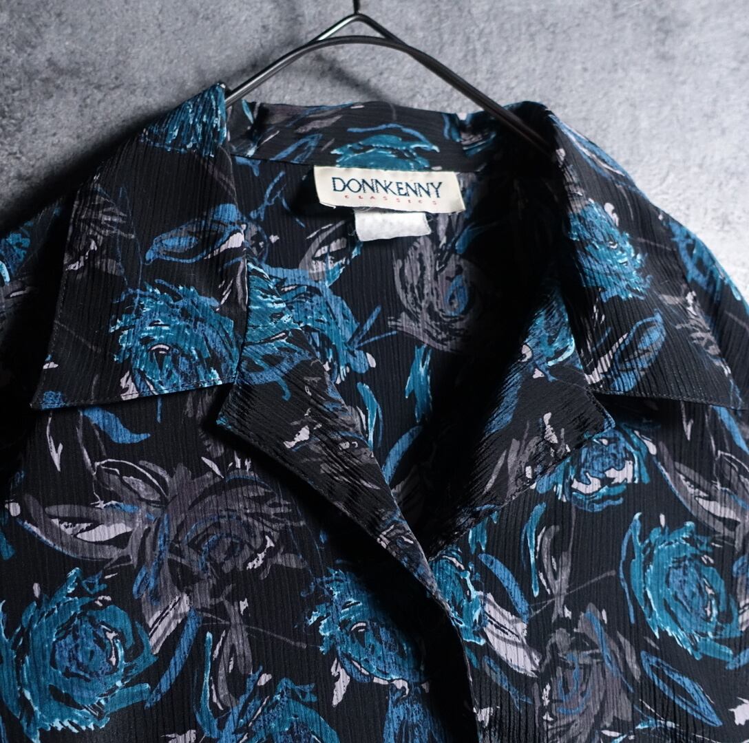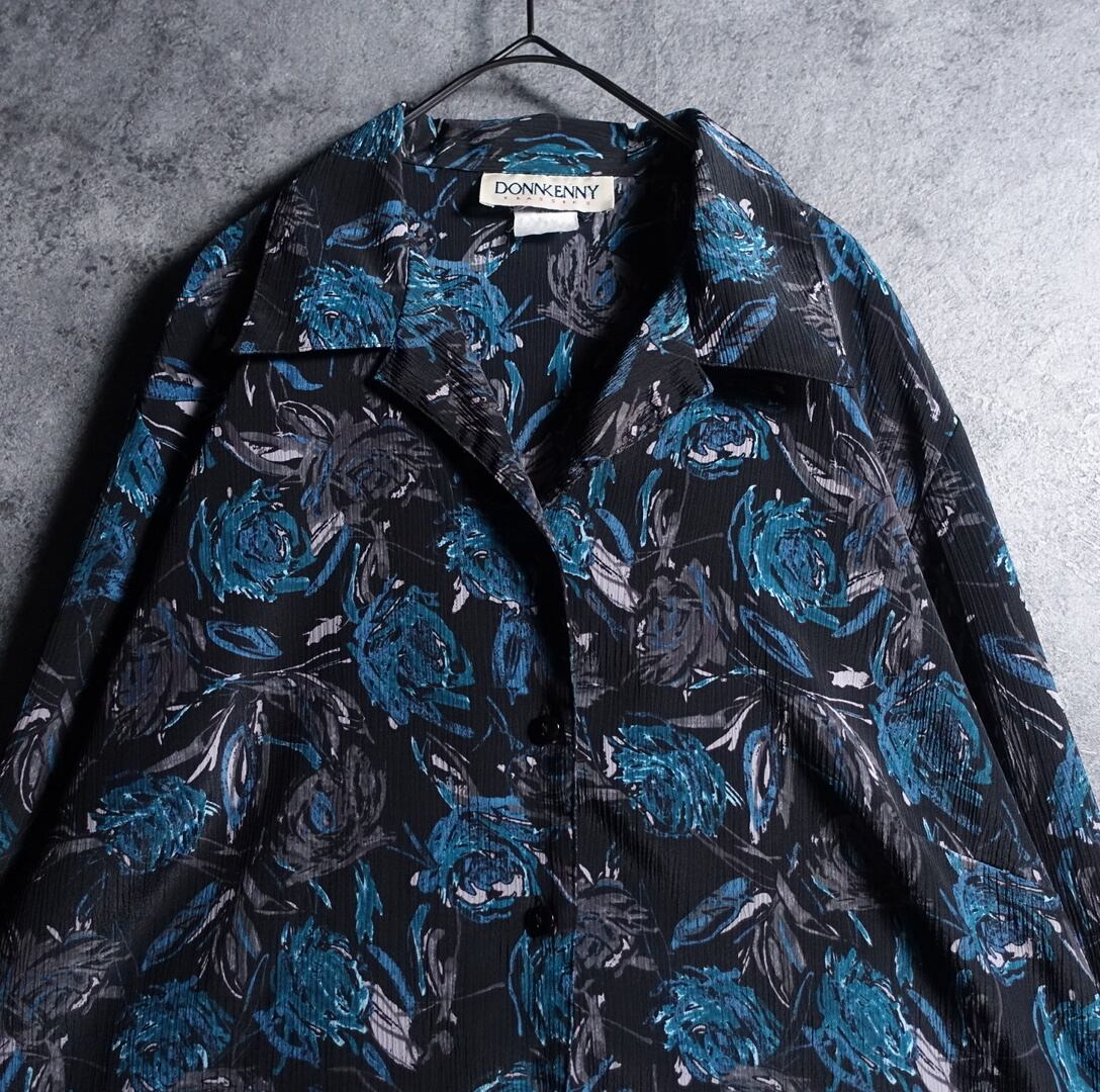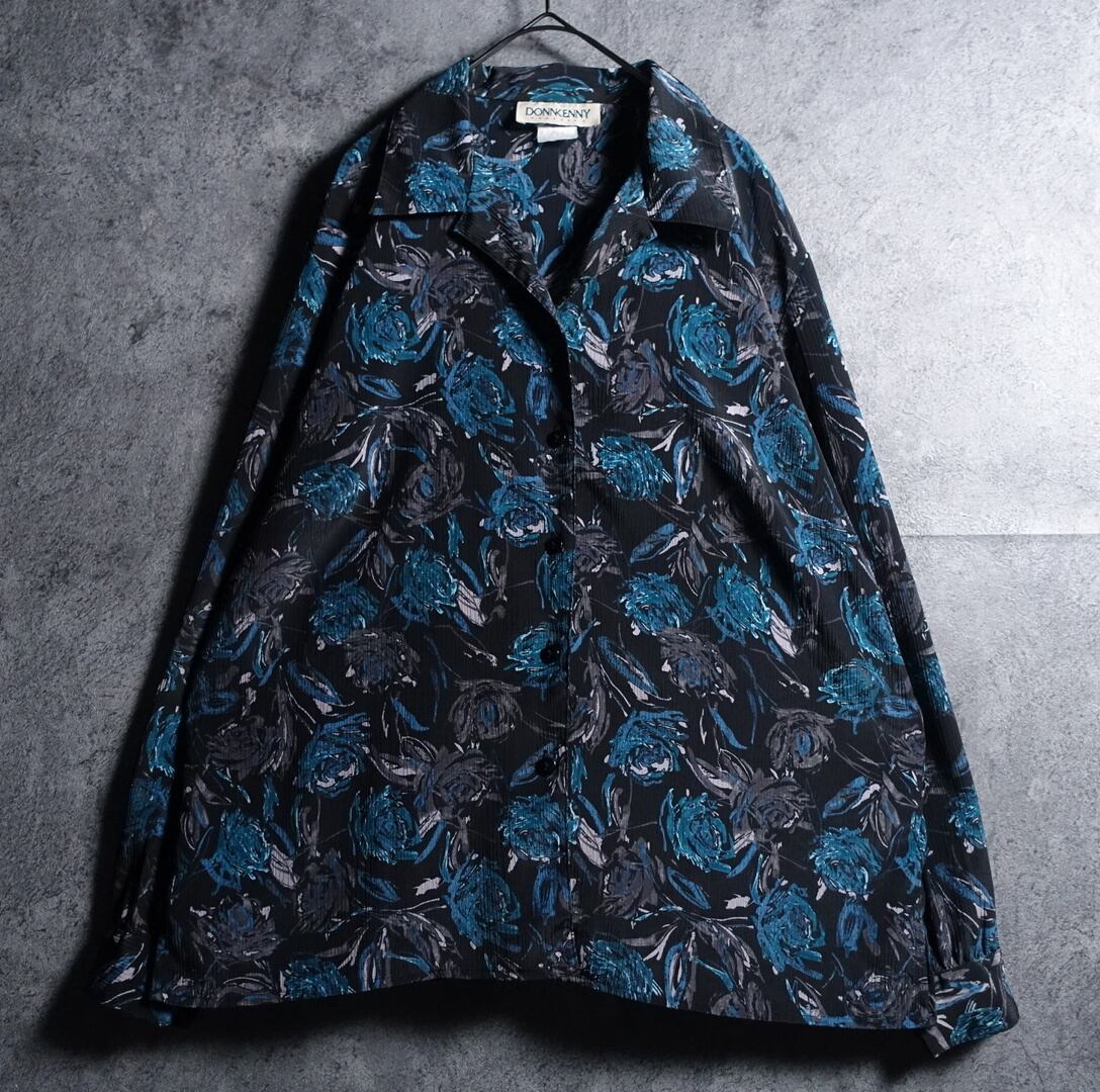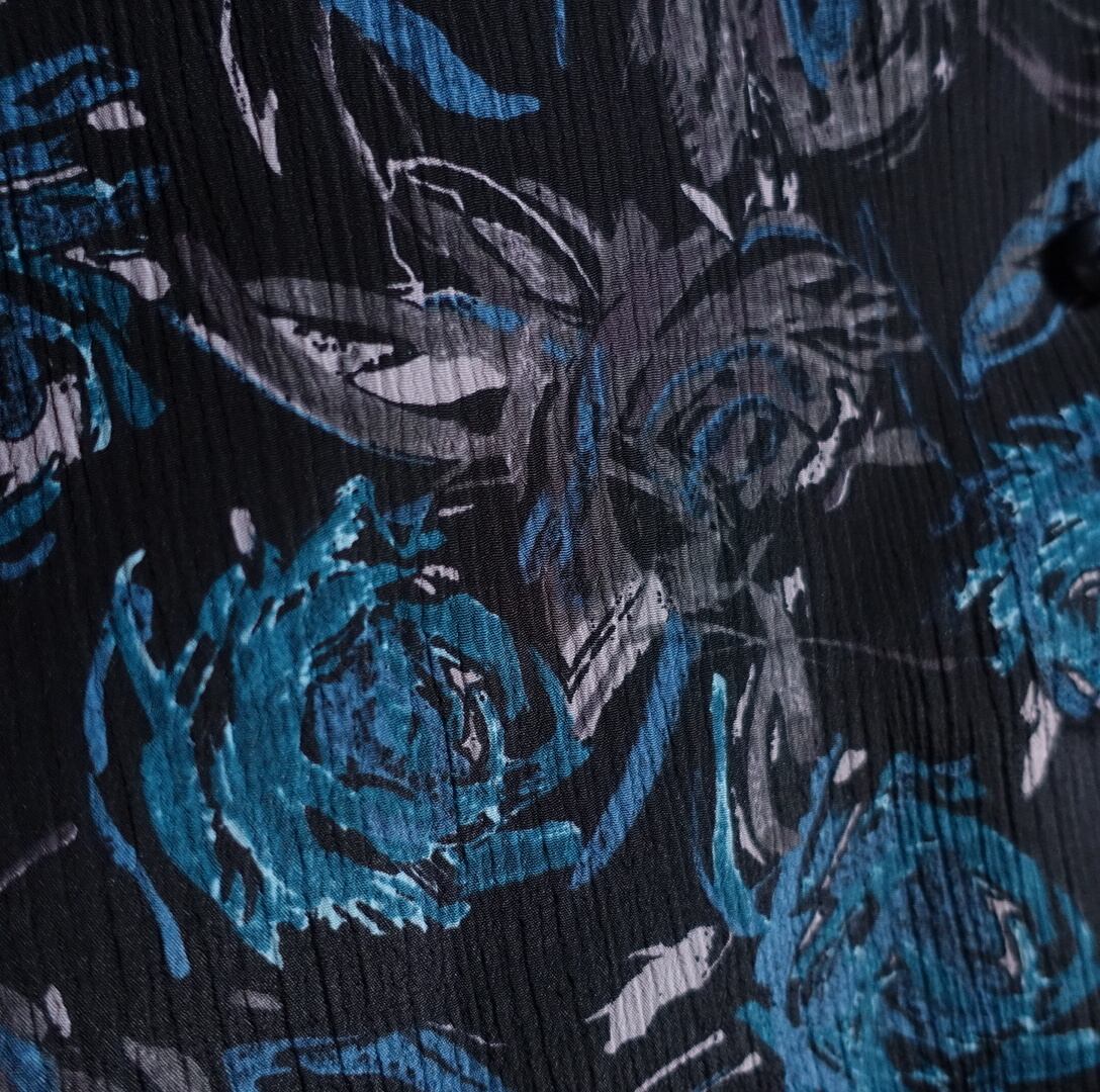 Black Rose Motif Artistic Pattern Wrinkled Design Open Collar Shirt