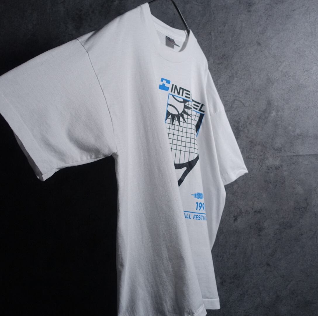 90s "FRUIT OF THE LOOM" White Tennis Festival Print T-Shirt
