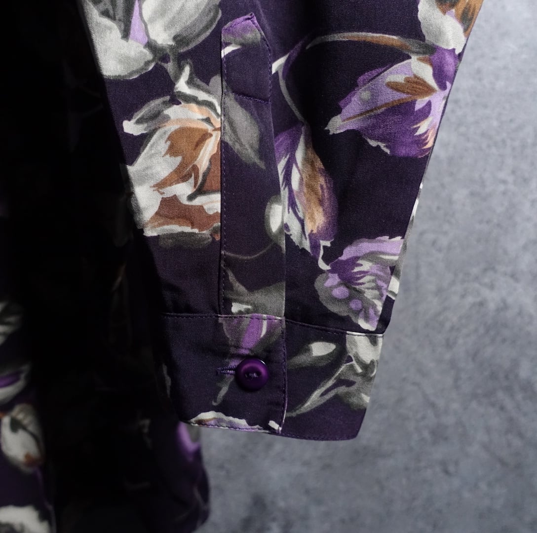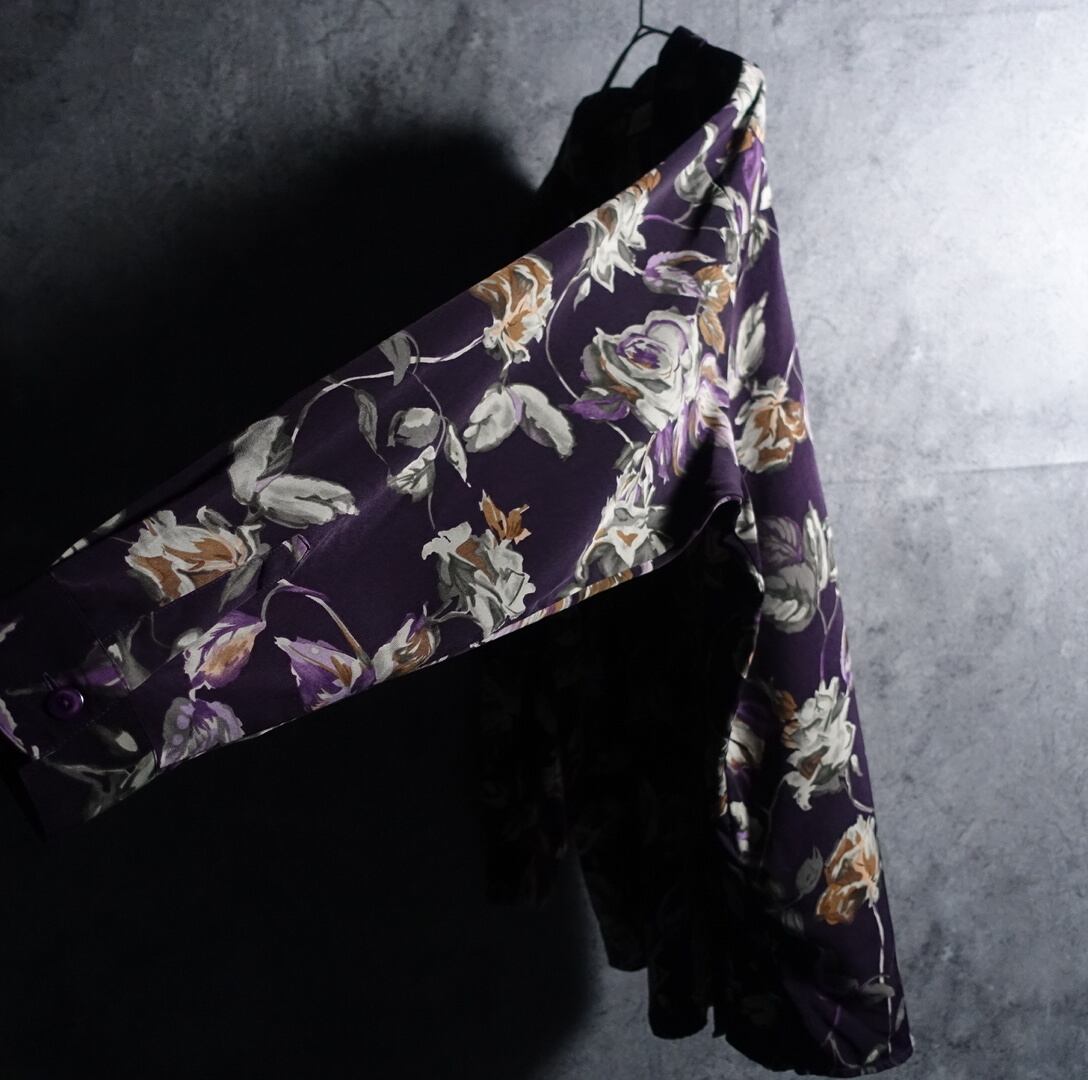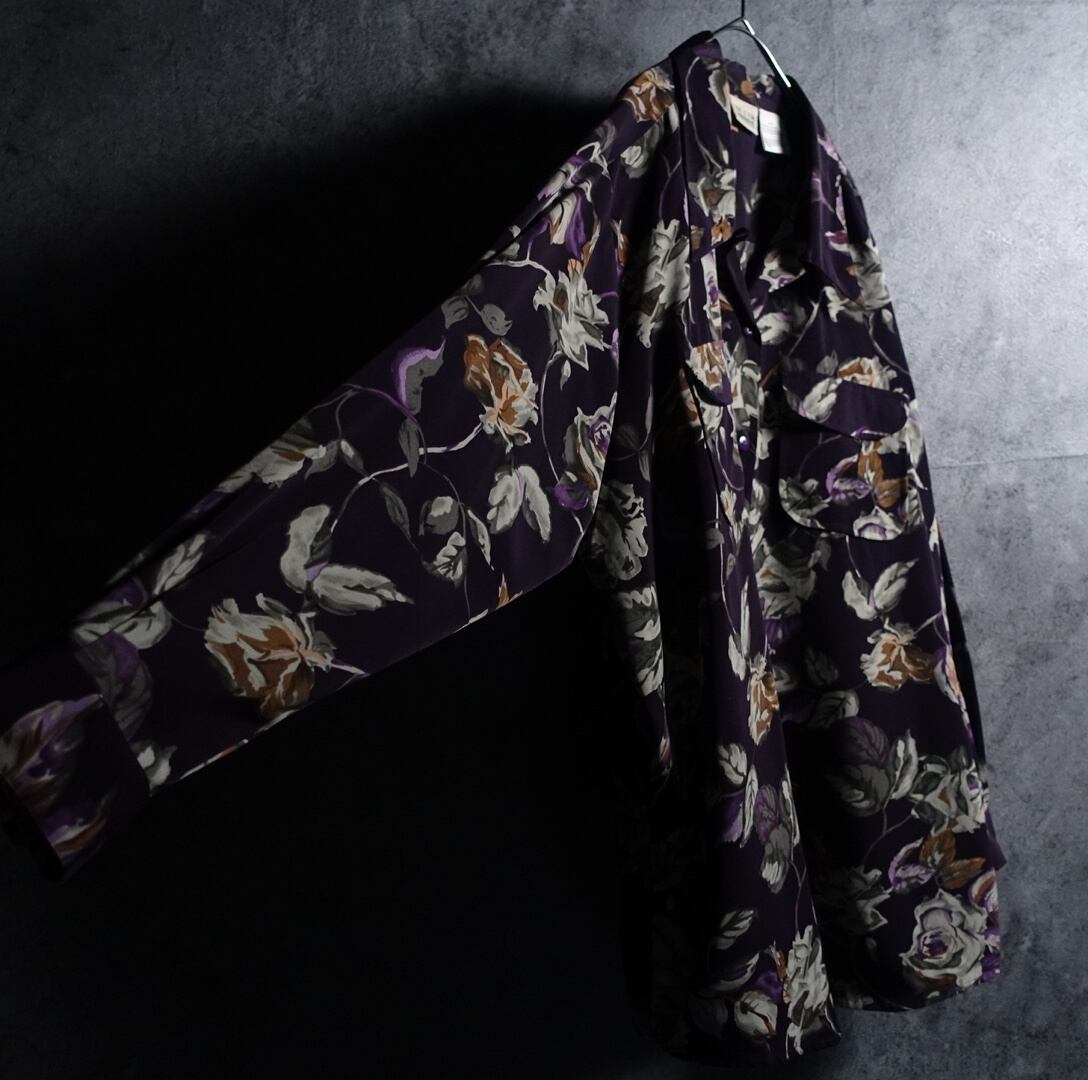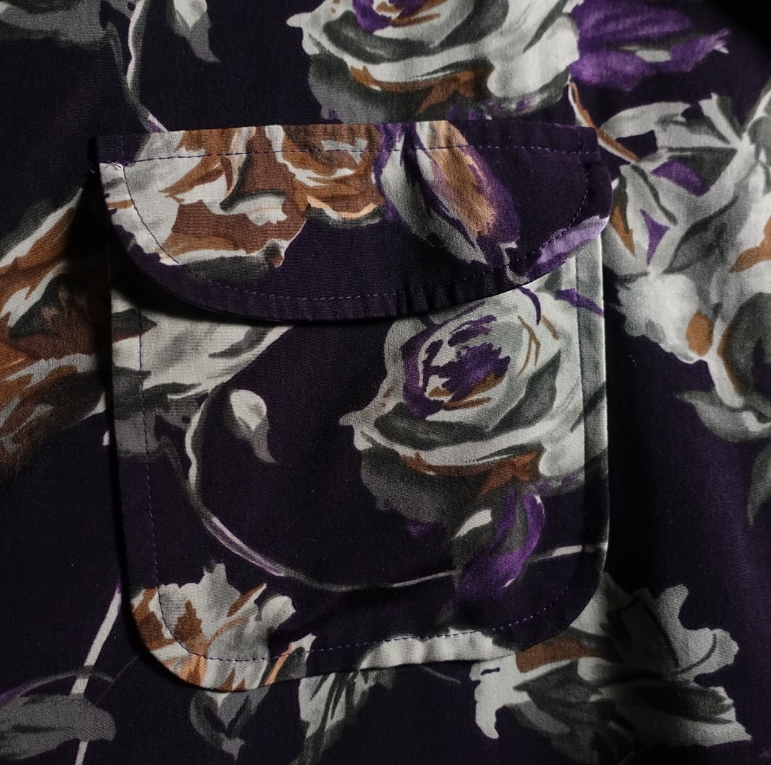 Purple Rose Flower Pattern Design Open Collar L/S Shirt