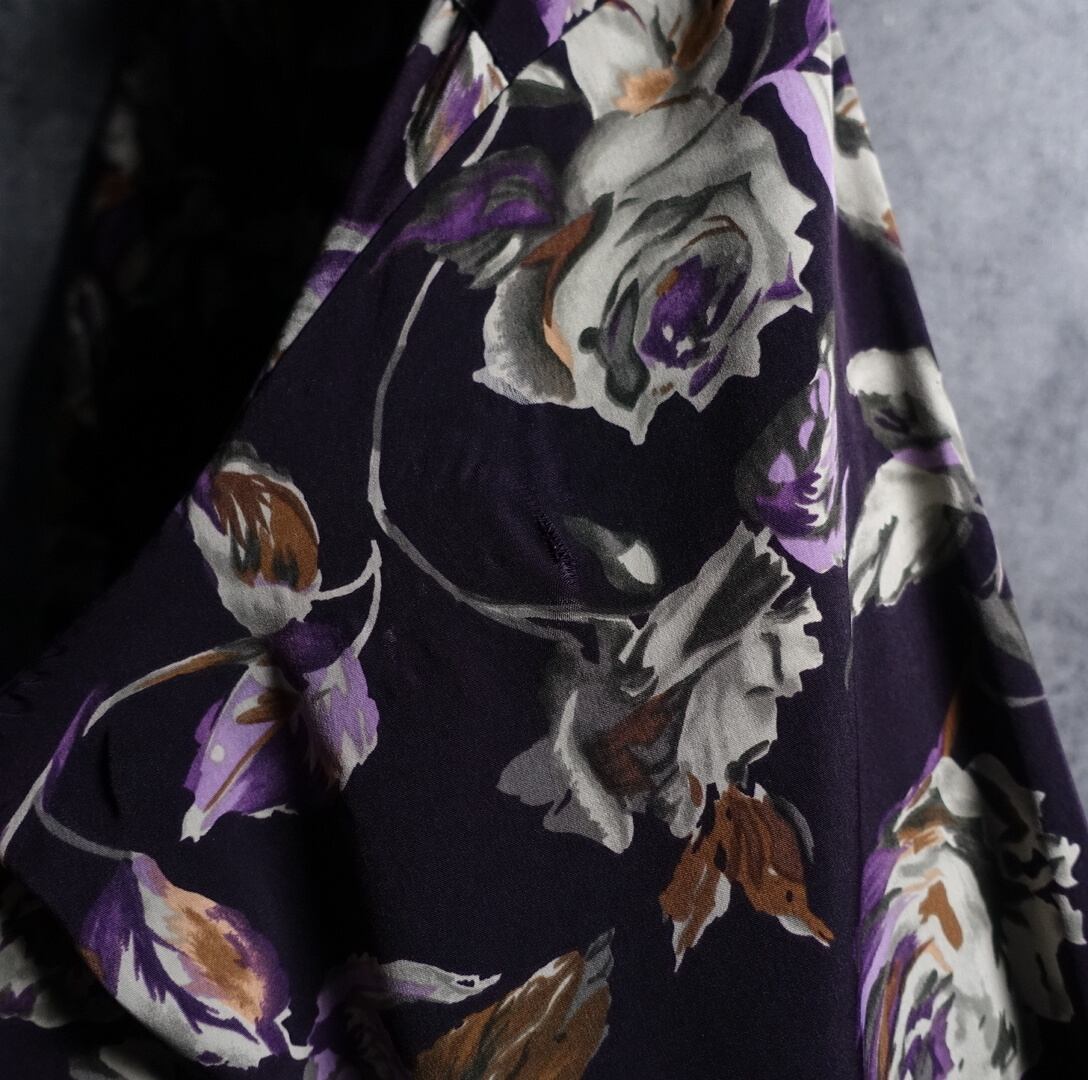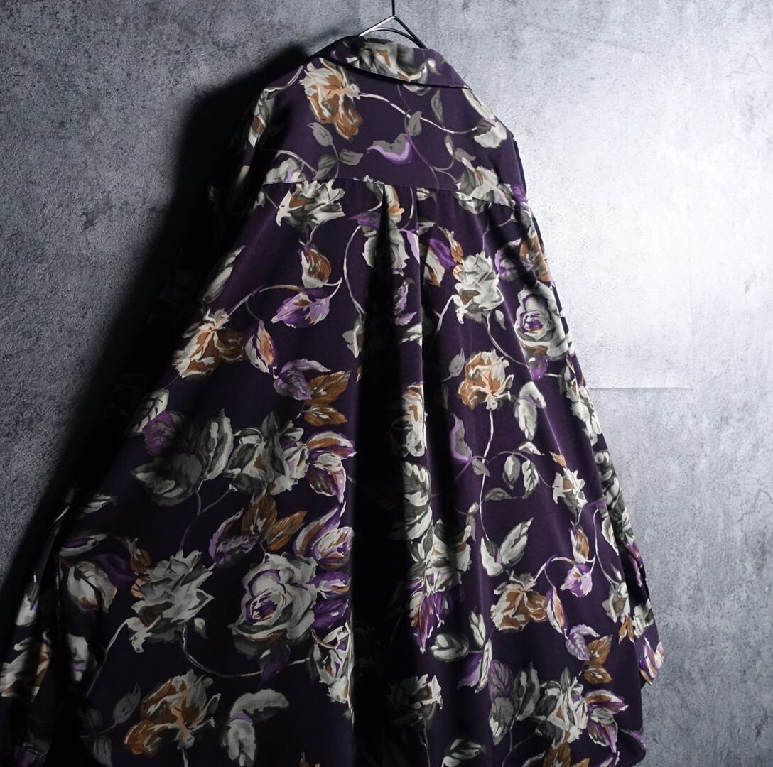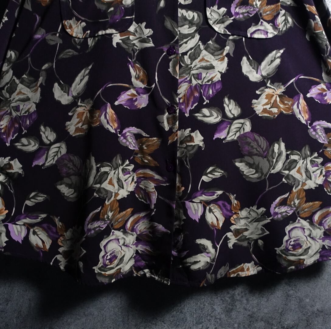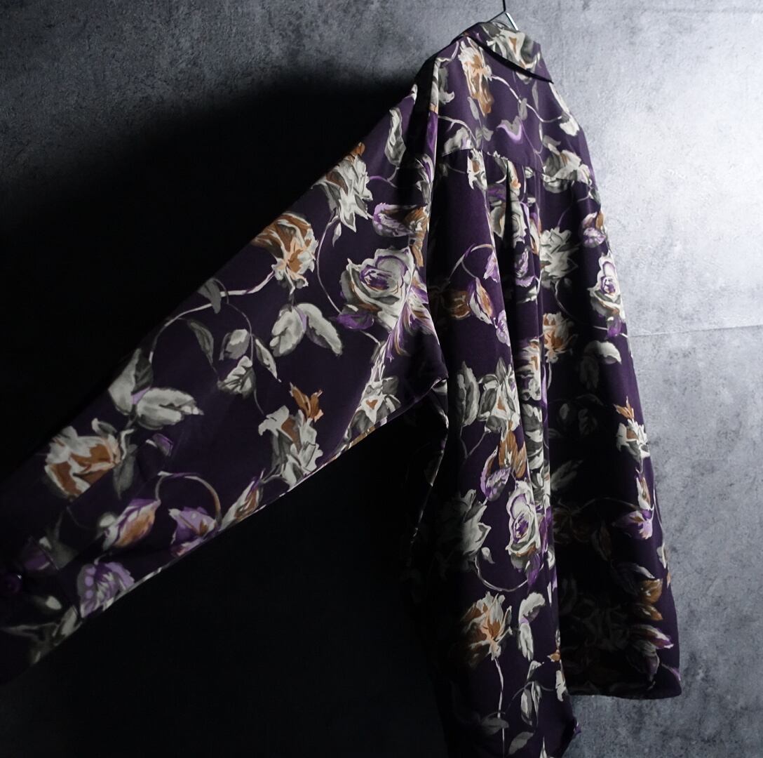 Purple Rose Flower Pattern Design Open Collar L/S Shirt