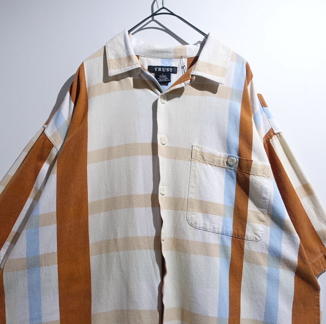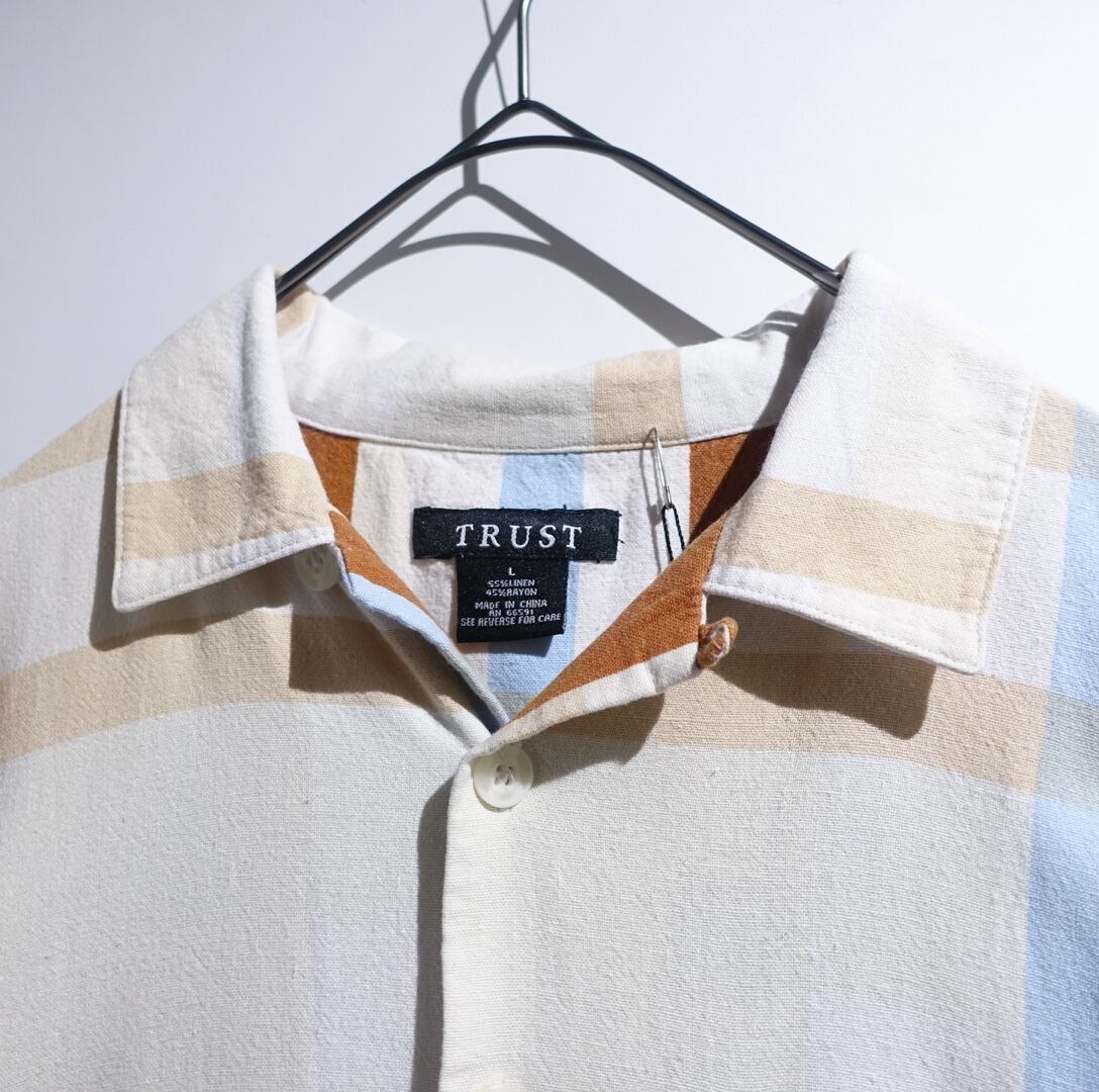 “TRUST” Multicolor Check Linen & Rayon Open Collar Shirt