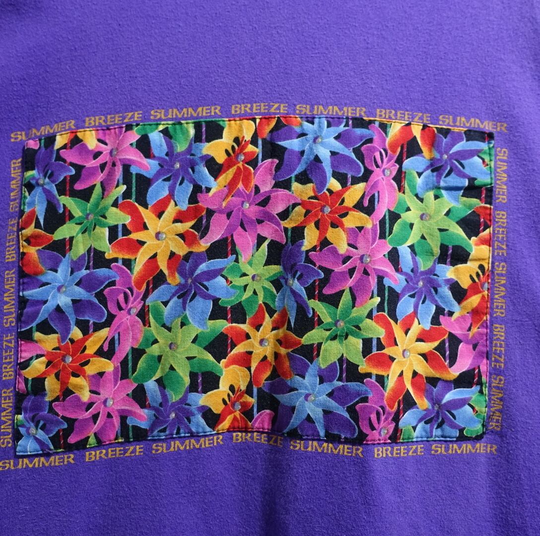 90s “Hanes” Purple Flower Alternative Fabric Design T-Shirt