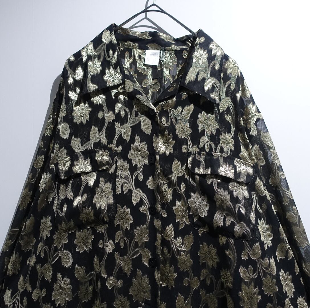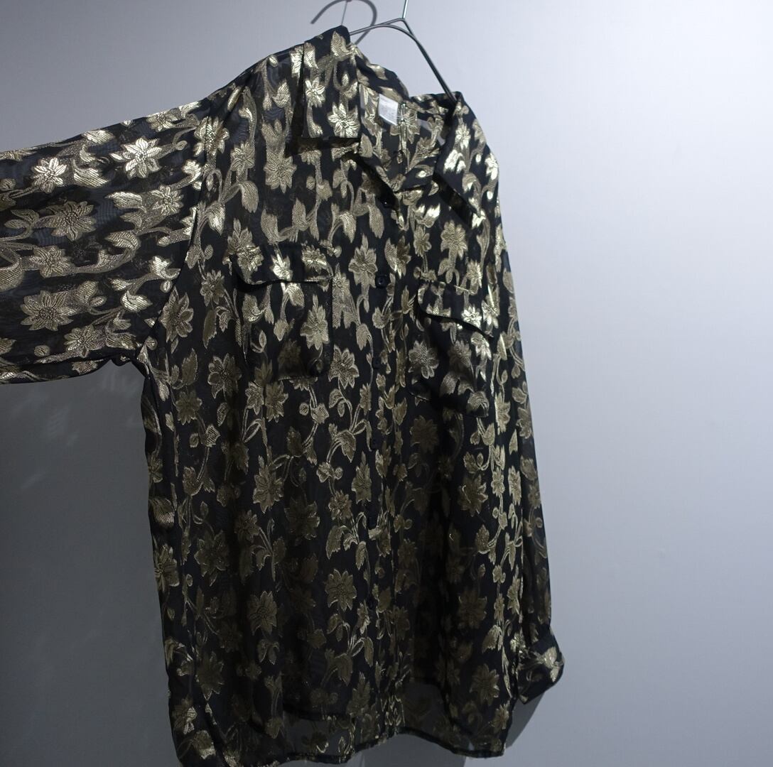 EURO Flower Pattern Jacquard Design See-Through Shirt