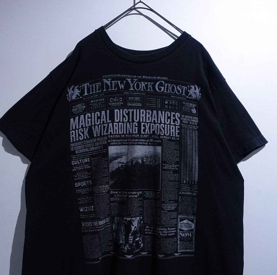 “FANTASTIC BEASTS” Black Newspaper Print Design T-Shirt