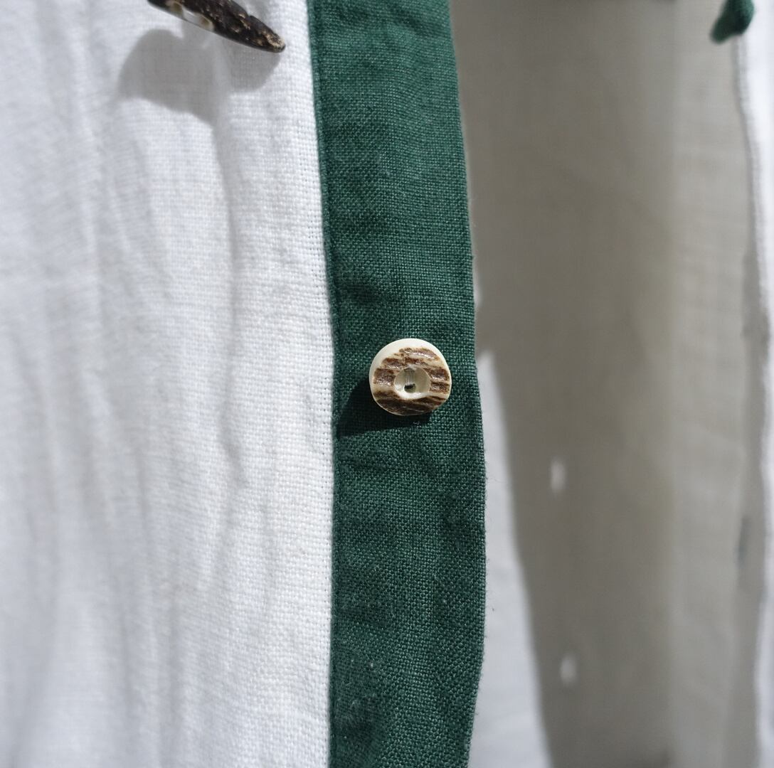EURO White Green & Toggle Button Linen Tyrolean Shirt