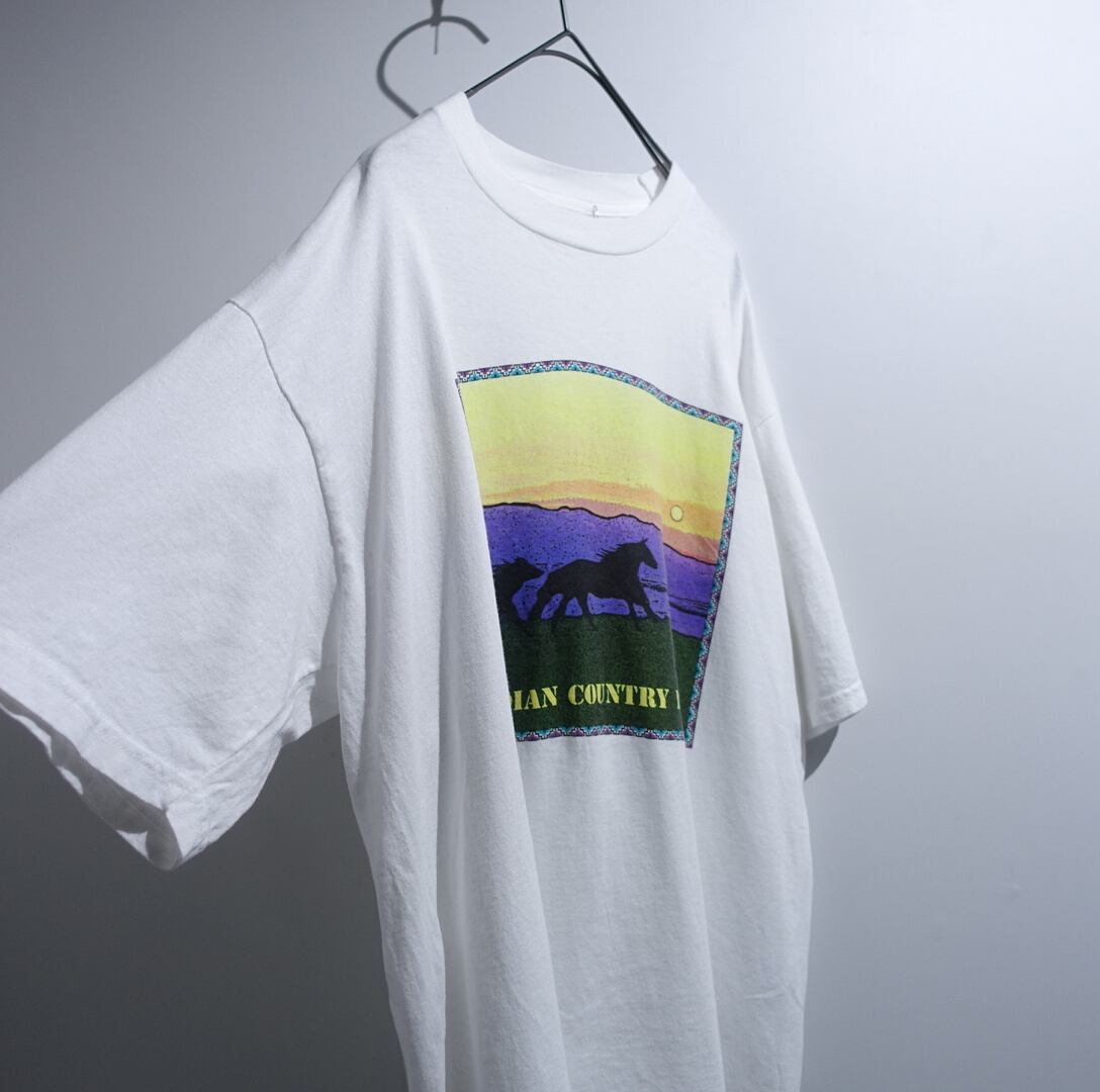 90s White Horse Landscape Artistic Print T-Shirt