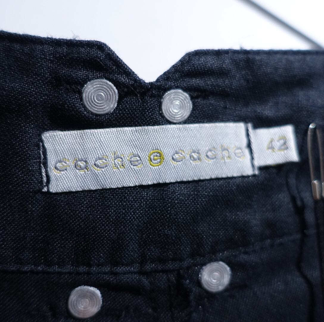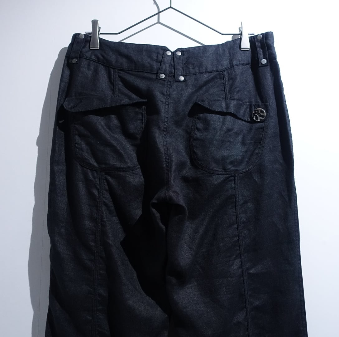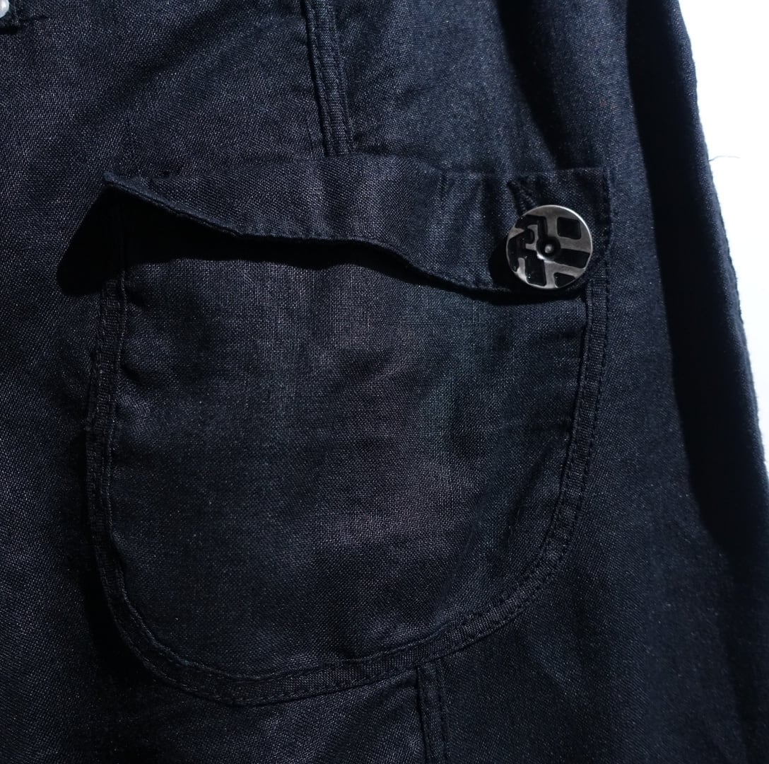 Black Metal Button Design Linen Slacks