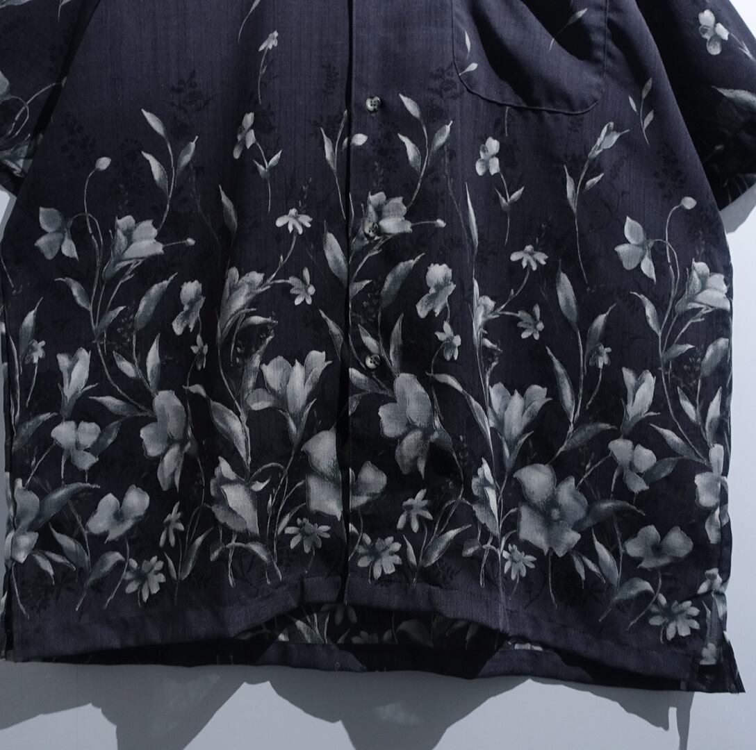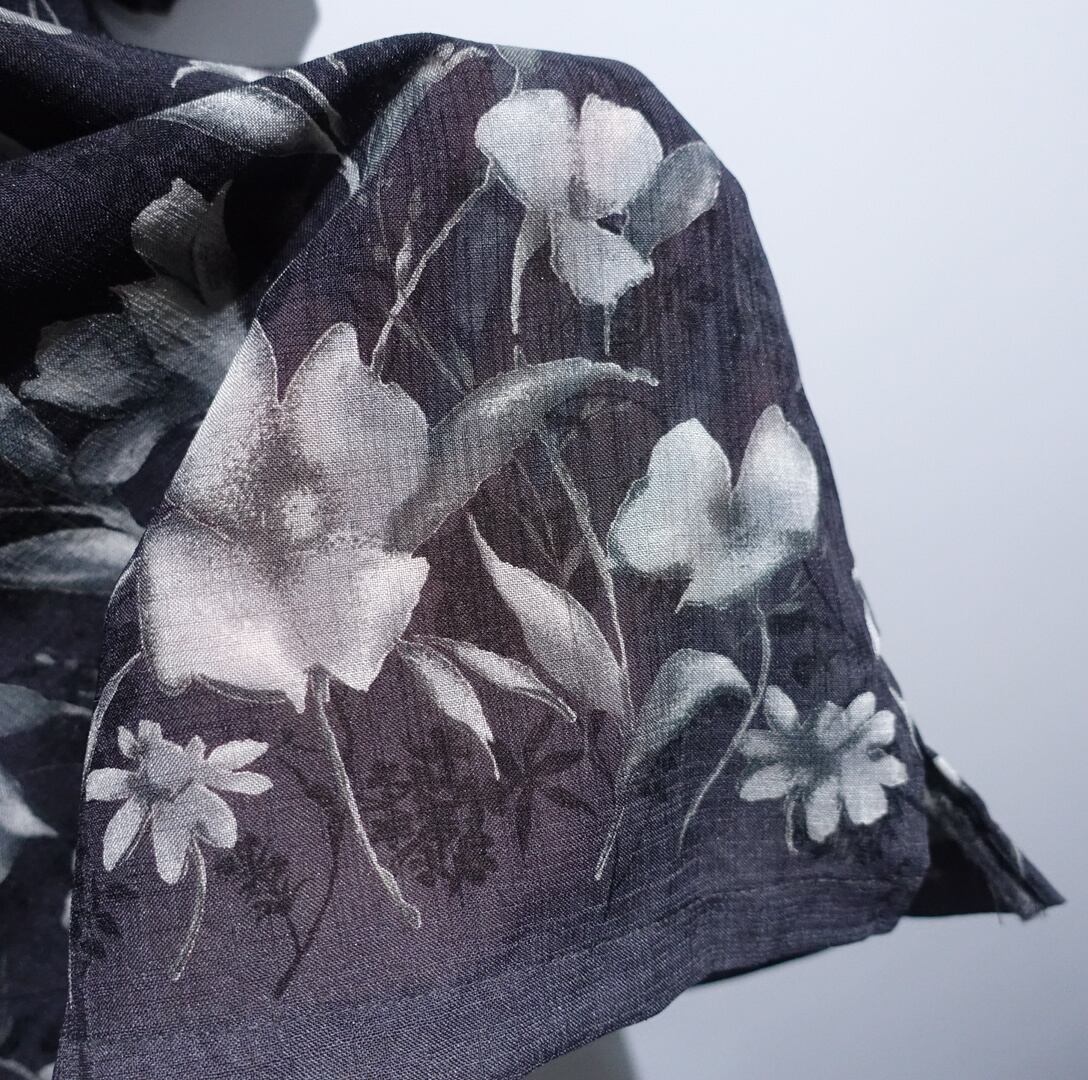 Charcoal Gray Flower Pattern Design Sheer Shirt