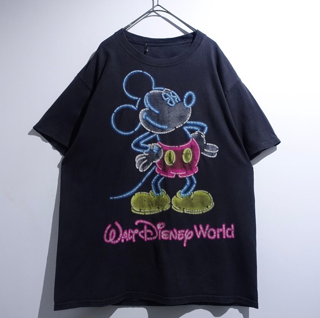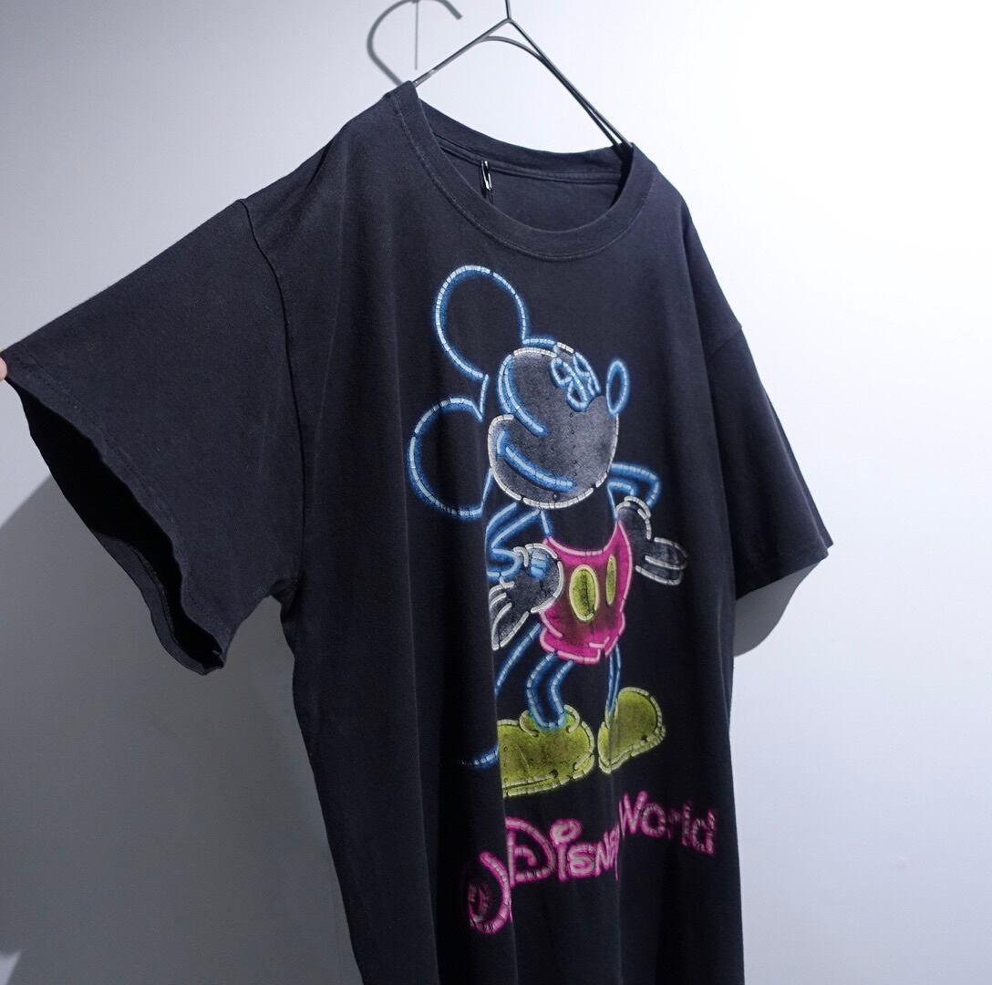 “Disney” Black Mickey Neon Light Print Design T-Shirt