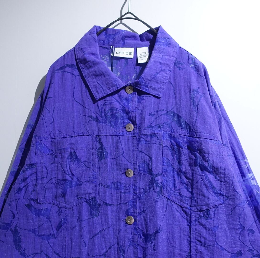 "CHICO'S" Purple Abstract Pattern See-Through Trucker Type Jacket