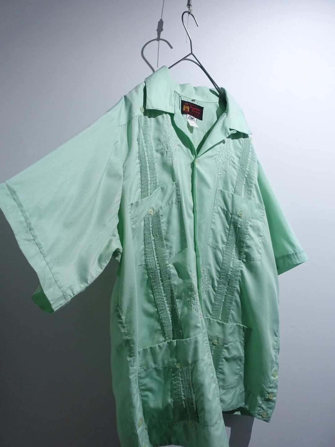 Light Green Ornament Embroidery & Pleats Design Cuba Shirt