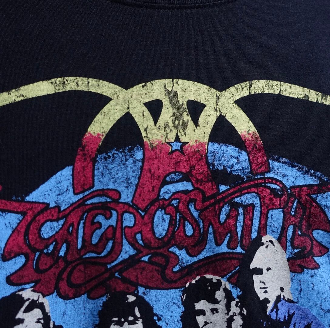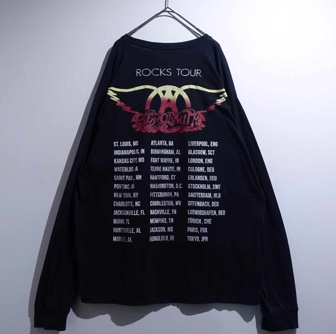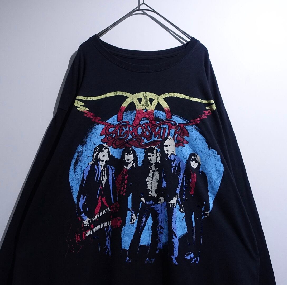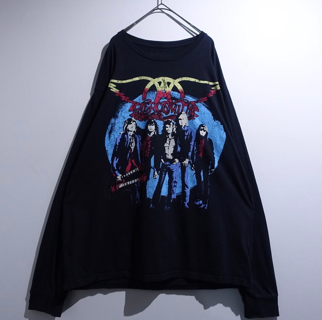 “AEROAMITH” Black Band Print Long T-Shirt