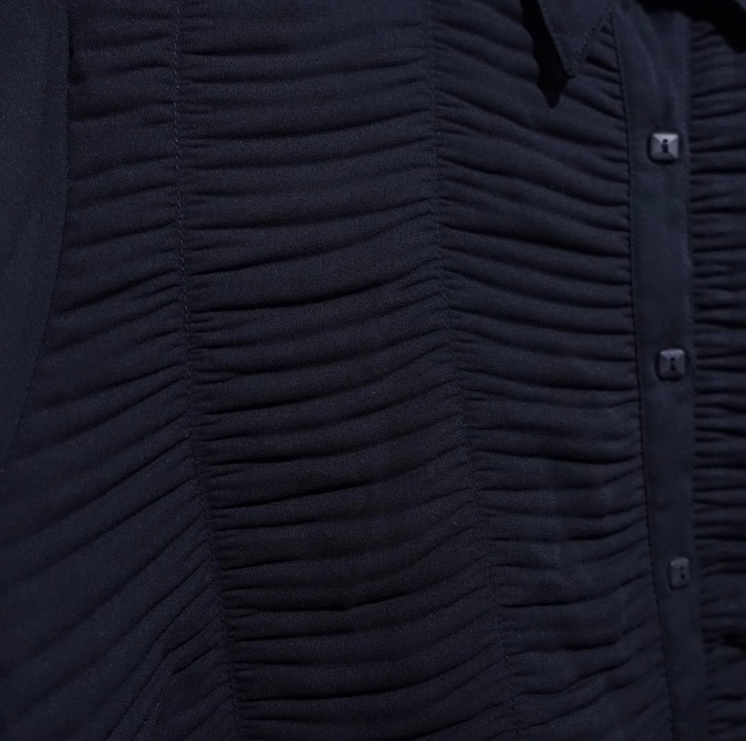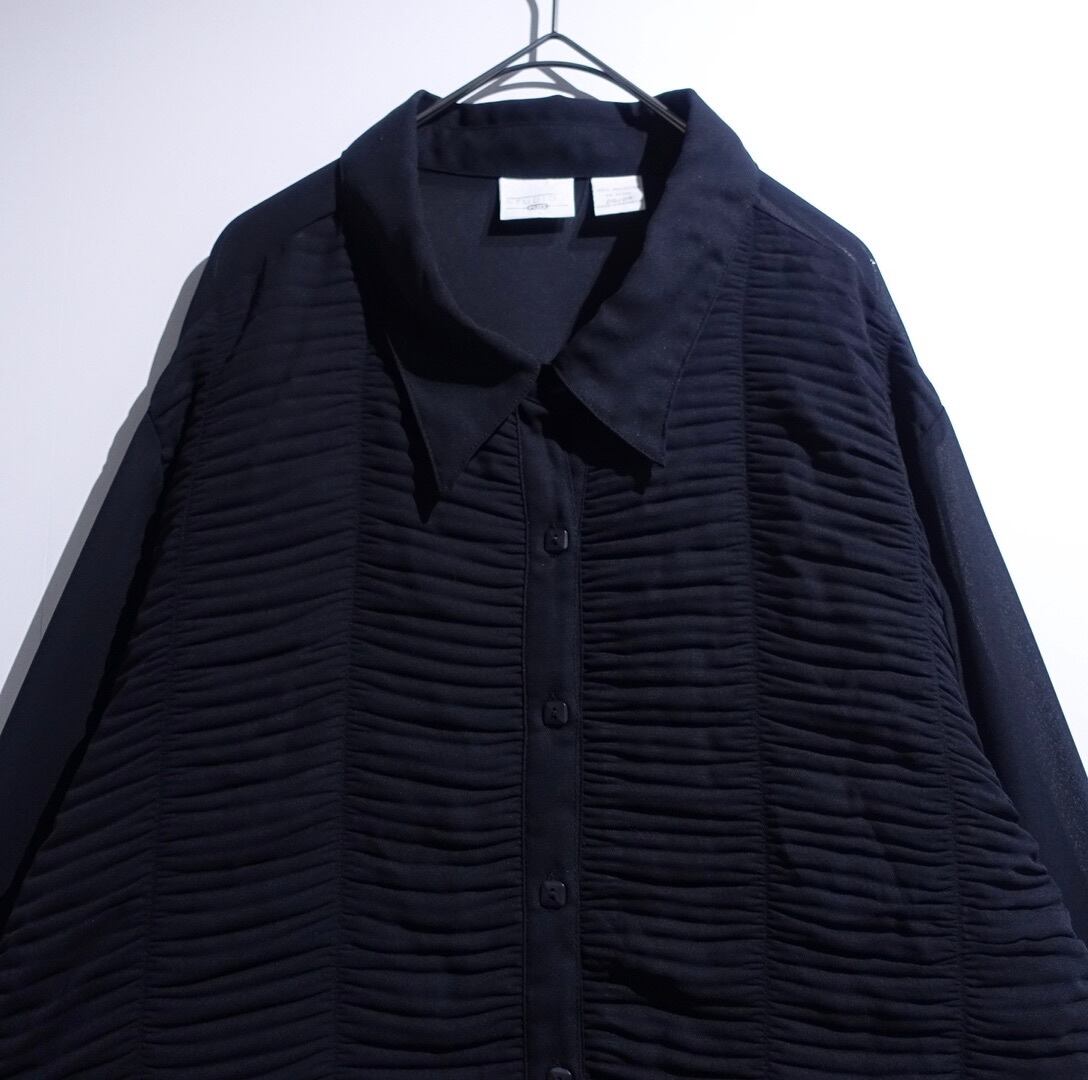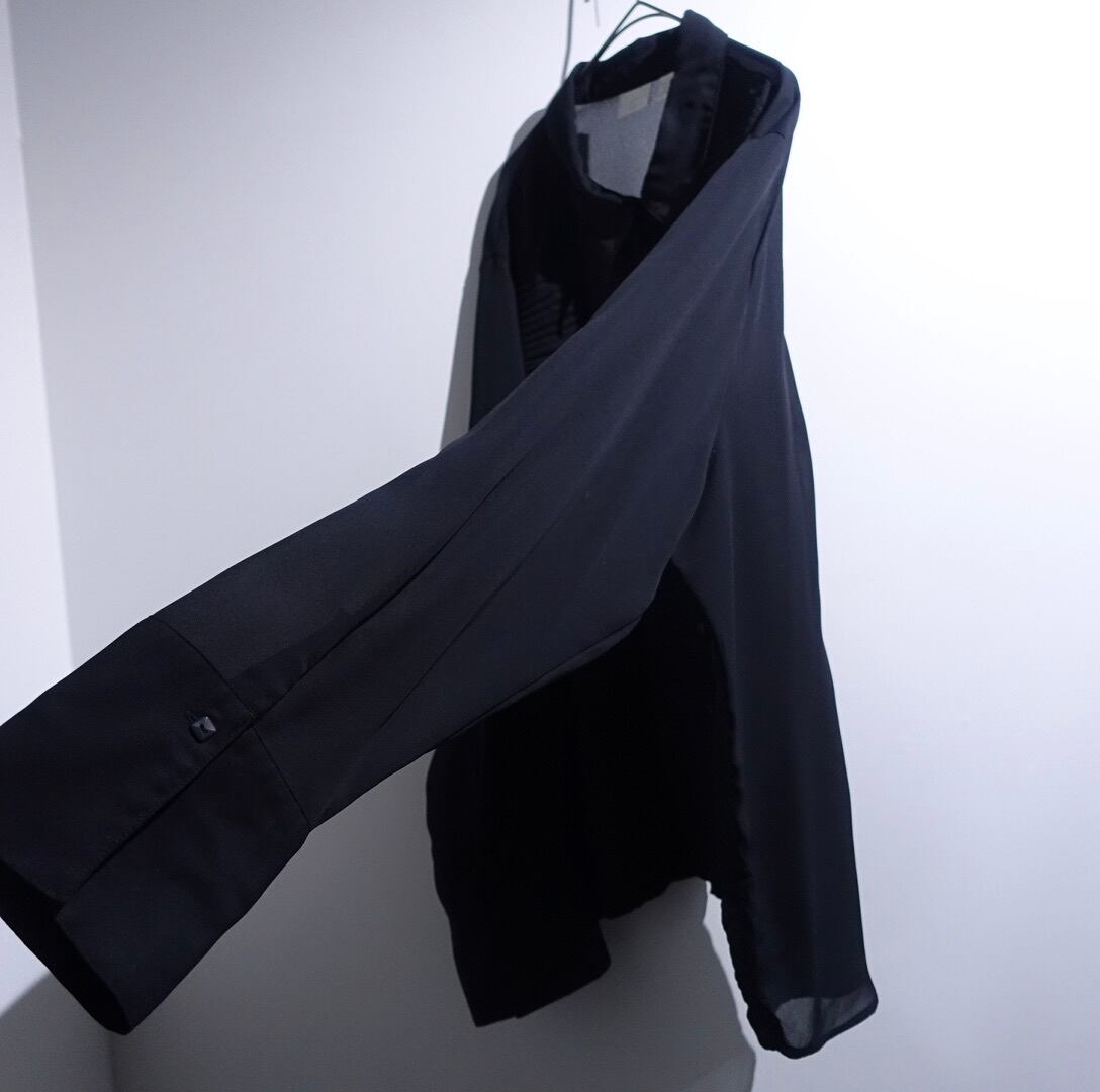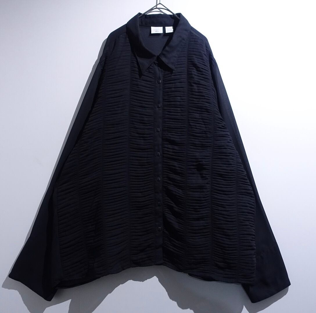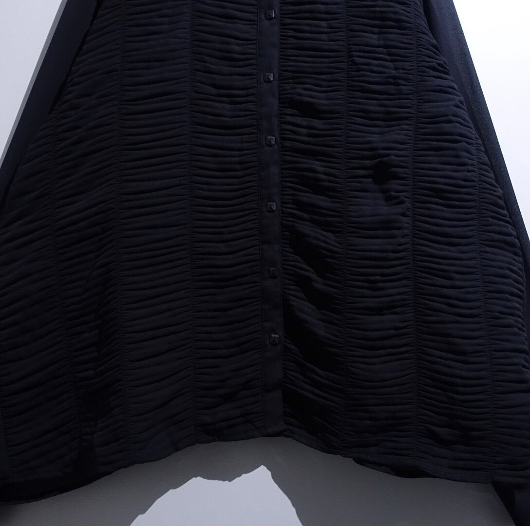 Black Pleats Switching Design Sheer Shirt