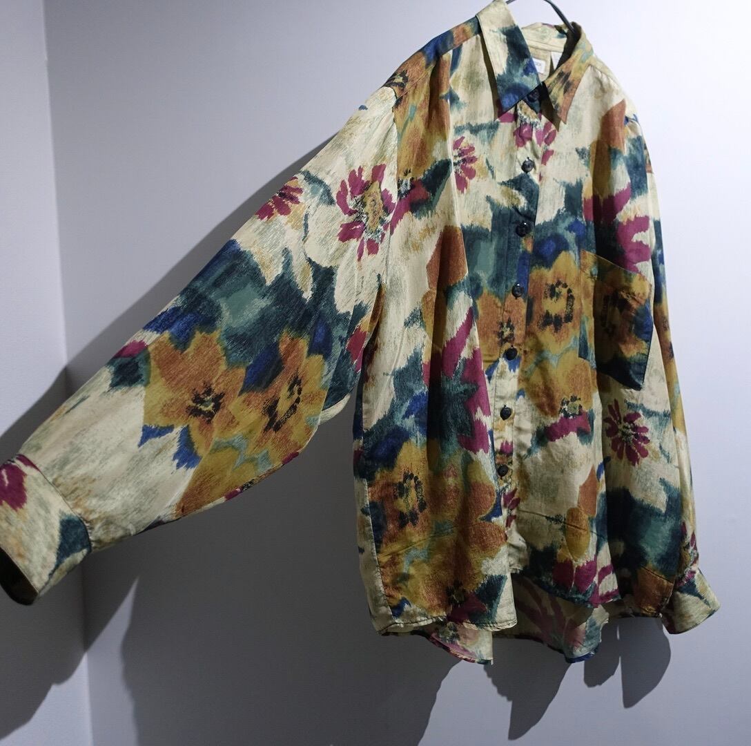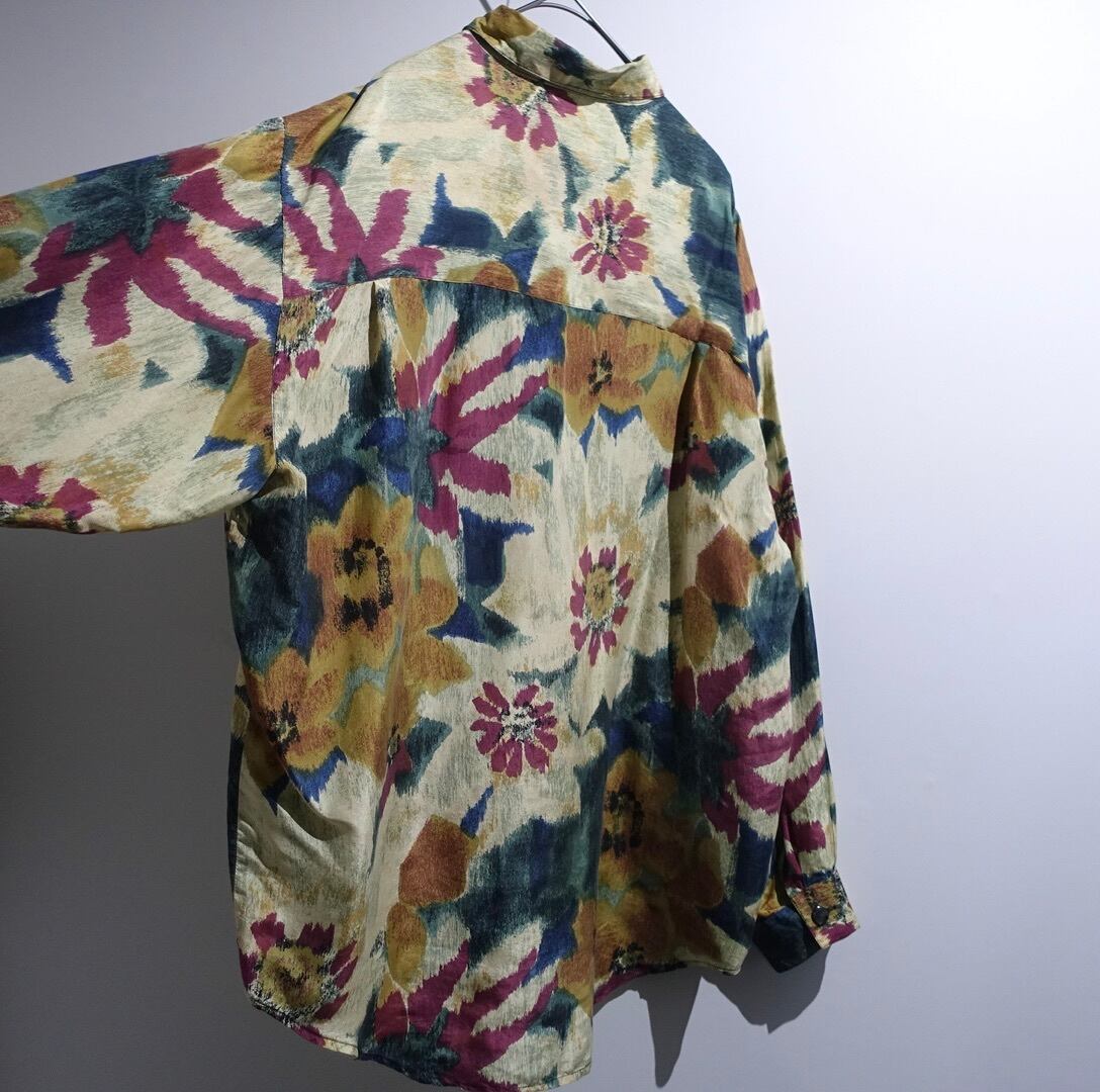 “ROBERT STOCK” Multicolor Flower Artistic Design Silk Shirt