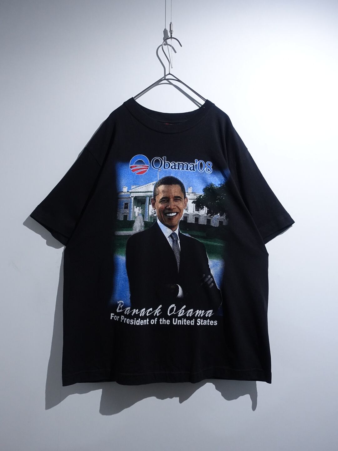 00s "Barack Obama" Black Double-Sided Print T-Shirt