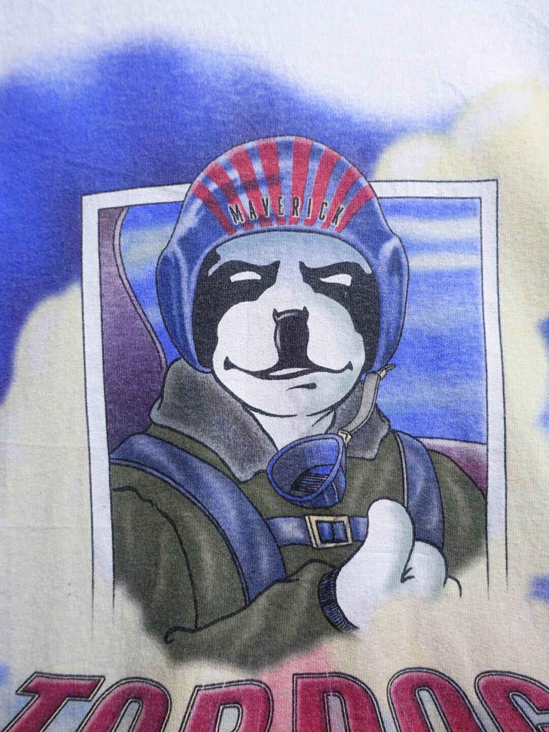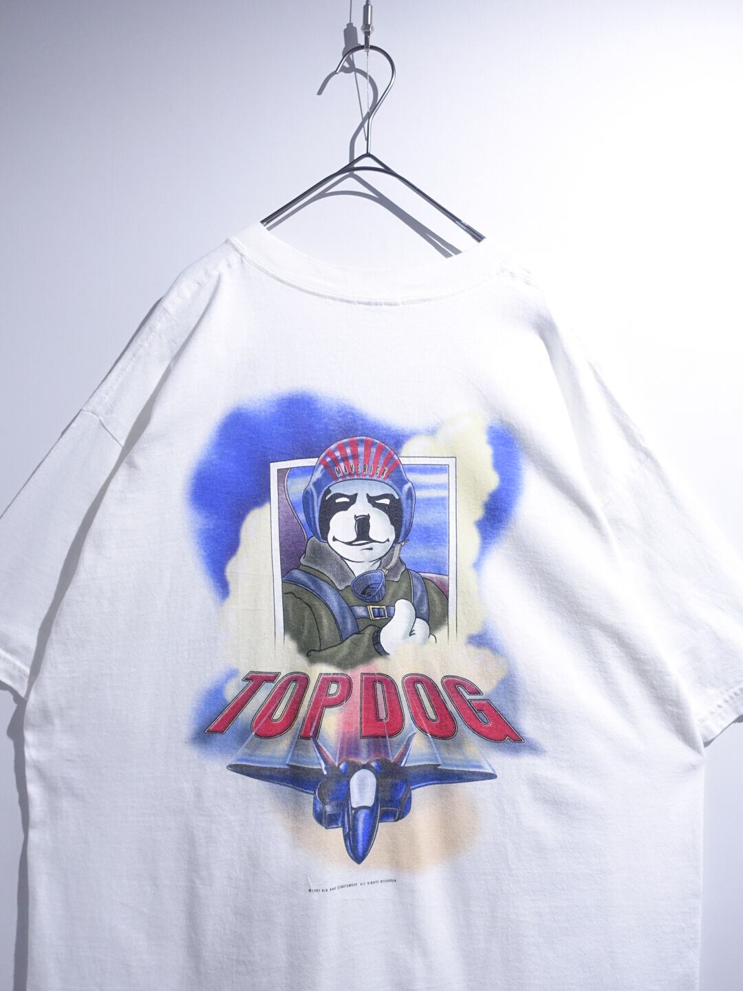 90s "BIG DOG" White TOP GUN Homage Print T-Shirt