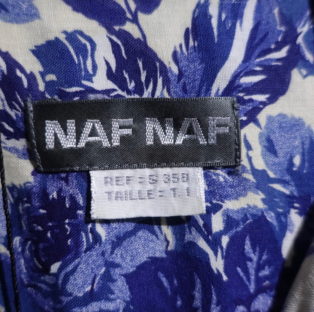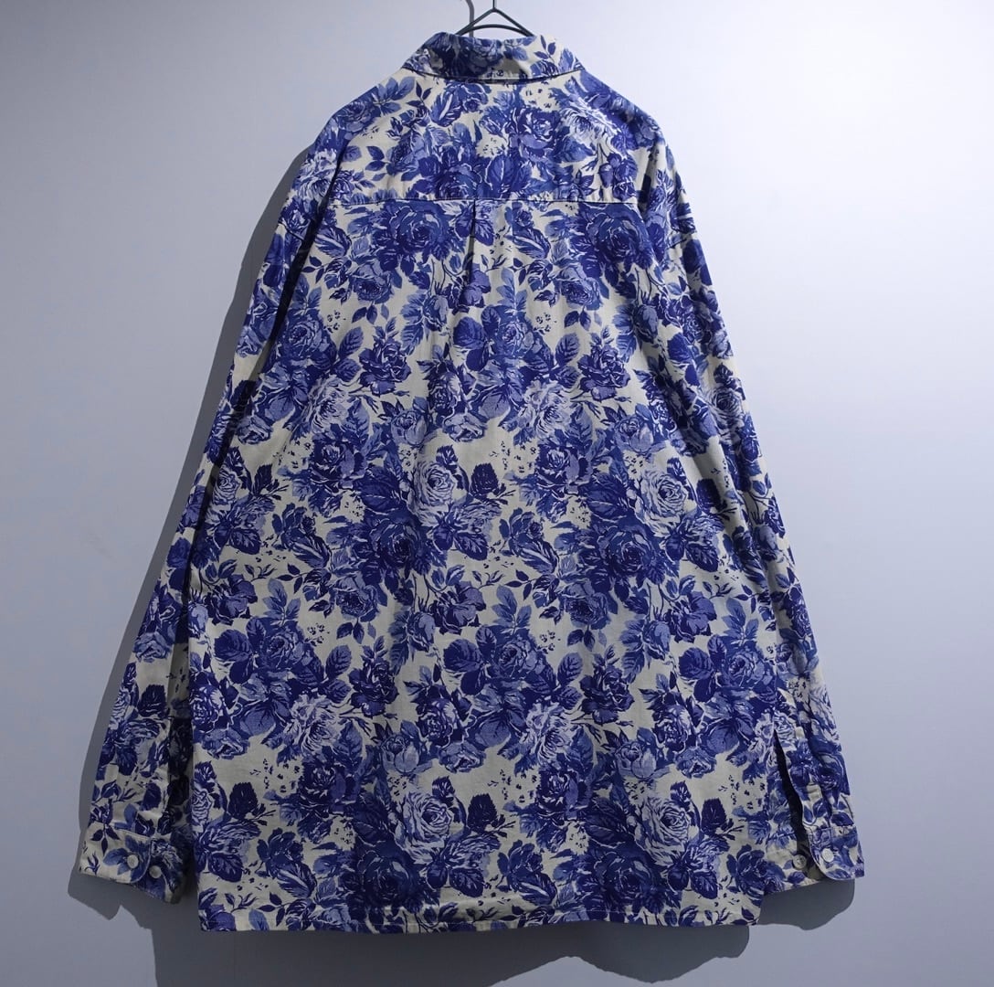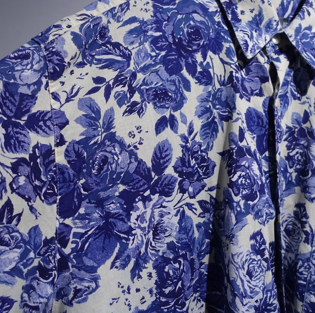 90s EURO “NAF NAF” Ivory & Blue Rose Pattern Design Shirt
