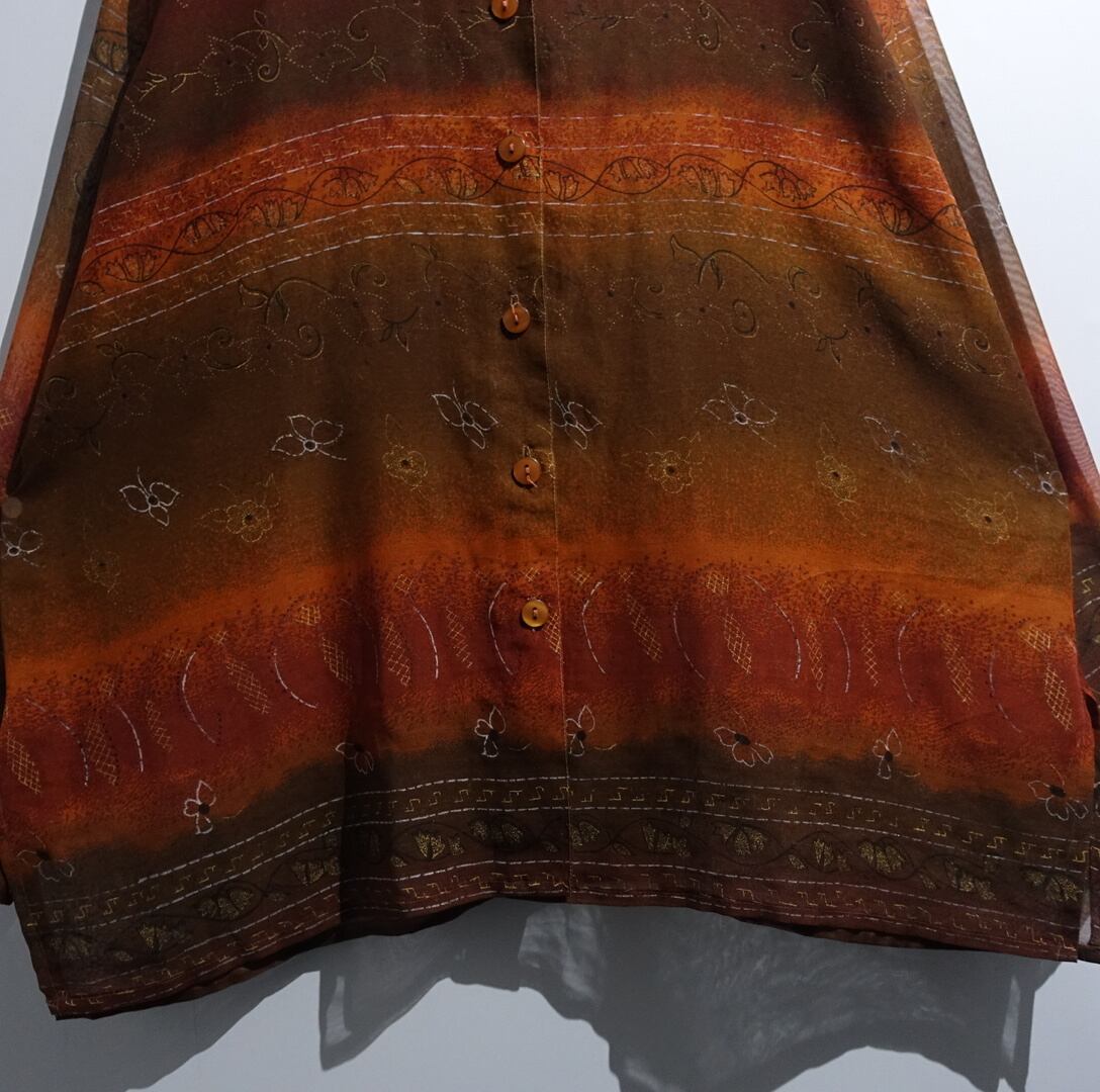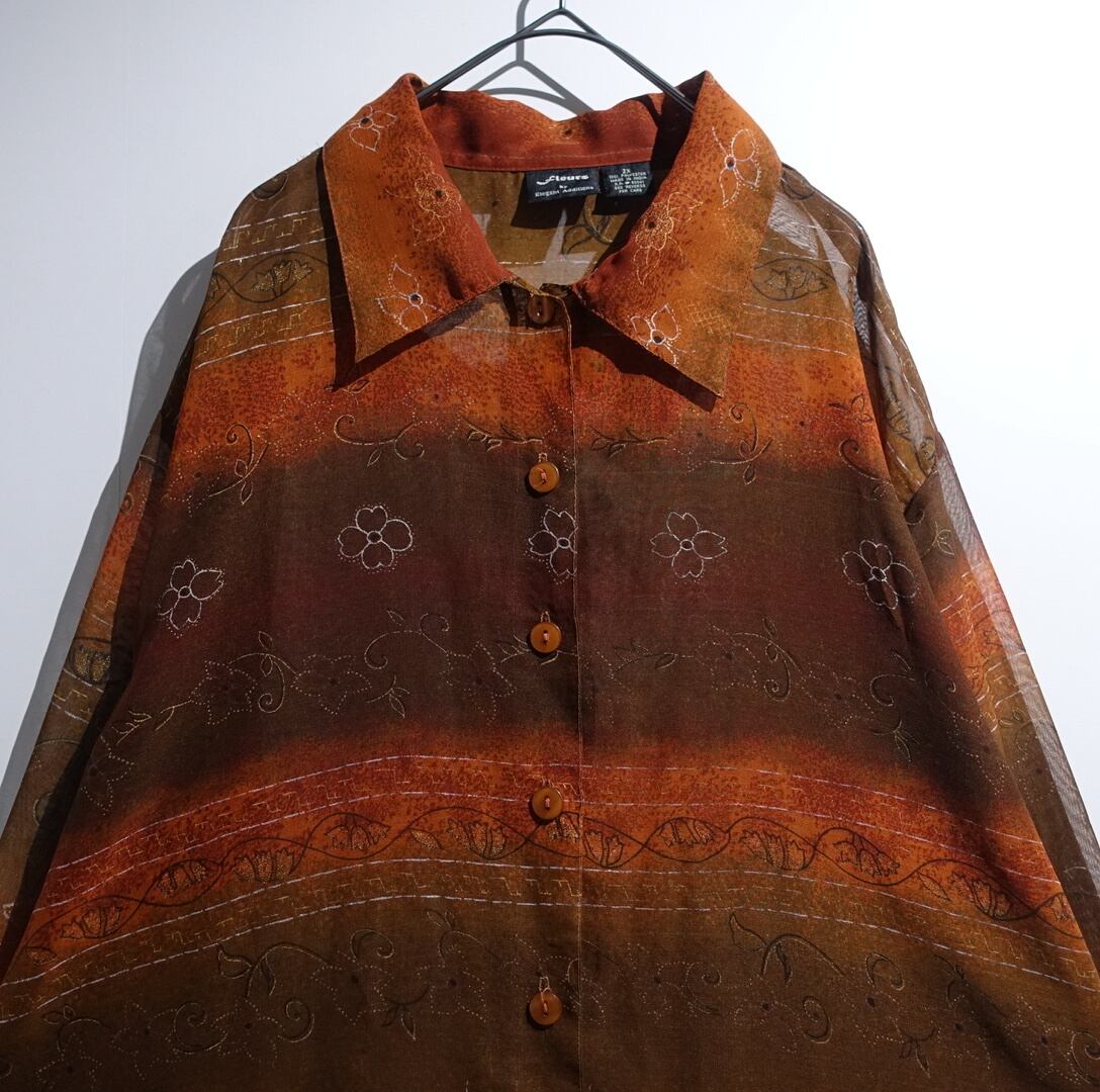 Multicolor Flower Pattern Design See-Through Shirt
