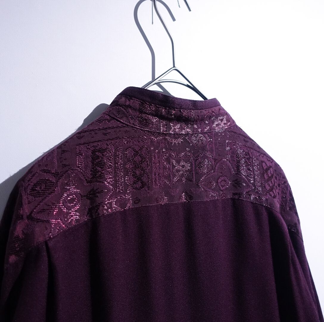“PLONTI” Wine Red Geometric Jacquard Band Collar Shirt