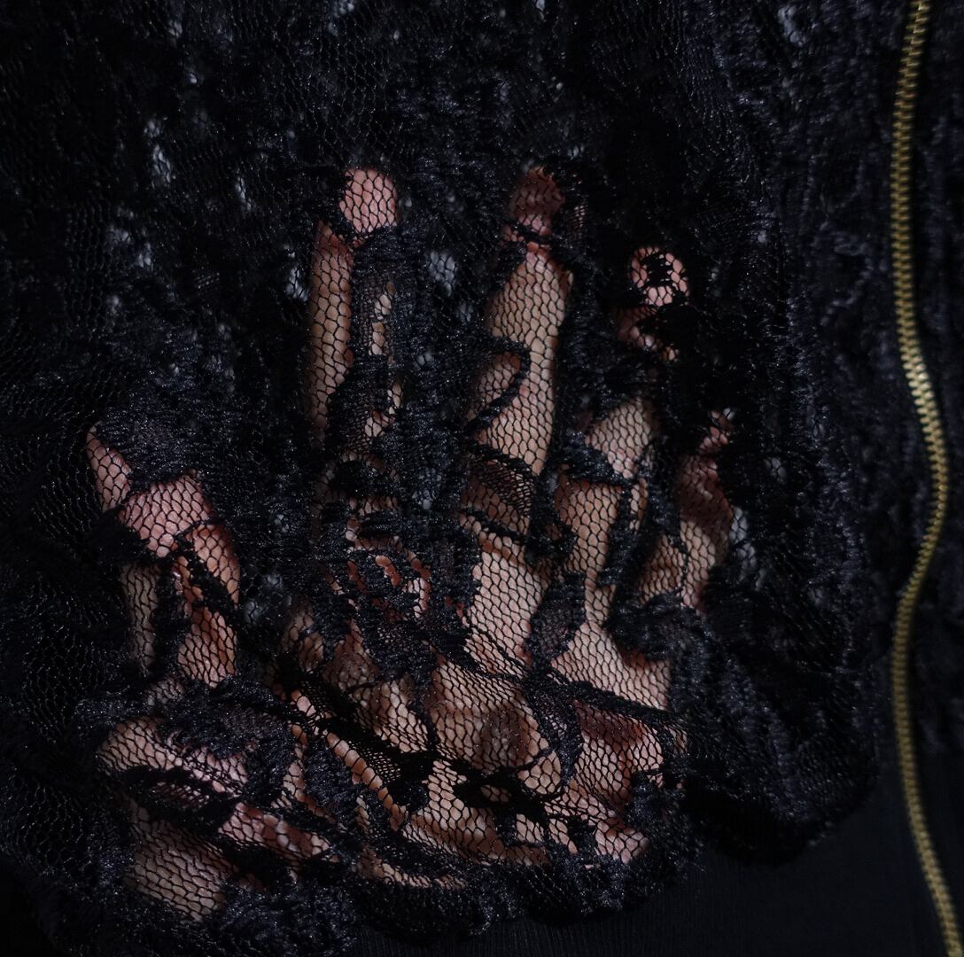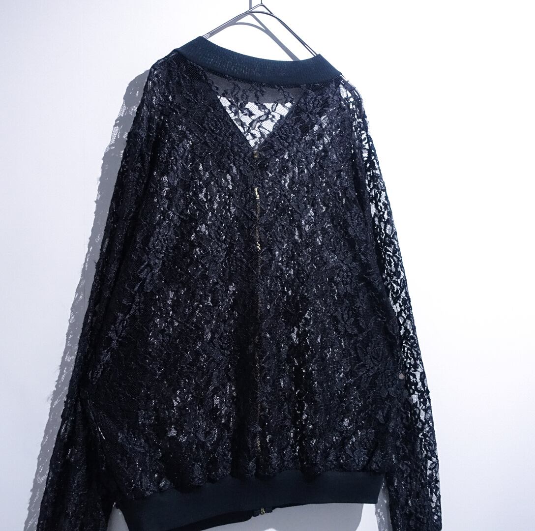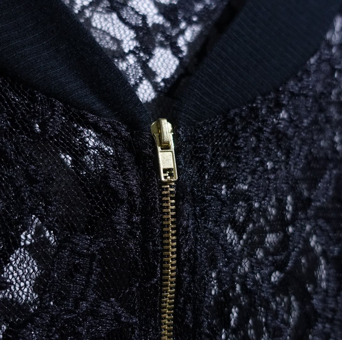 Black Flower Pattern Design Lace Zip BlousonMaterial :