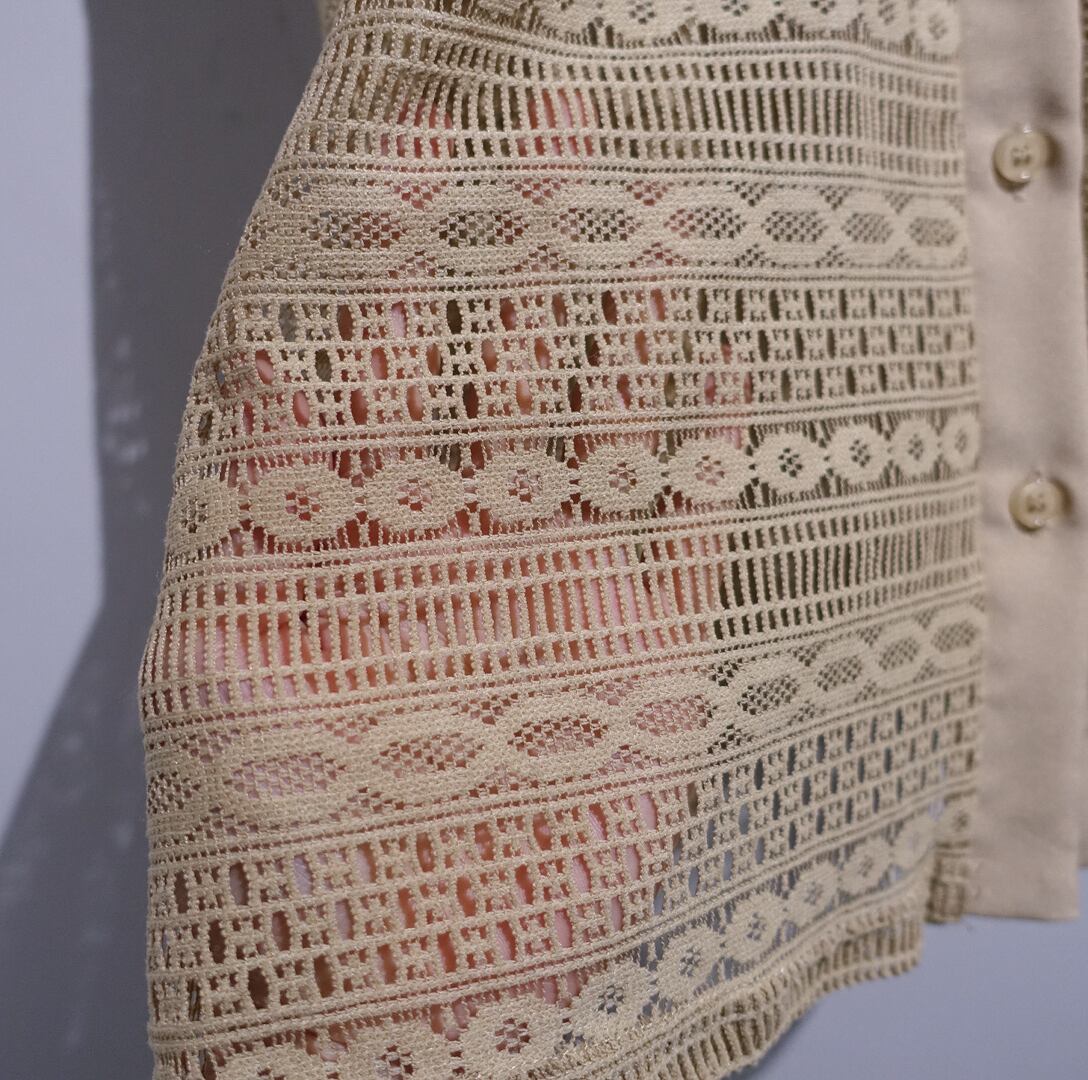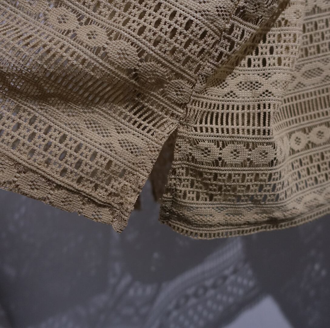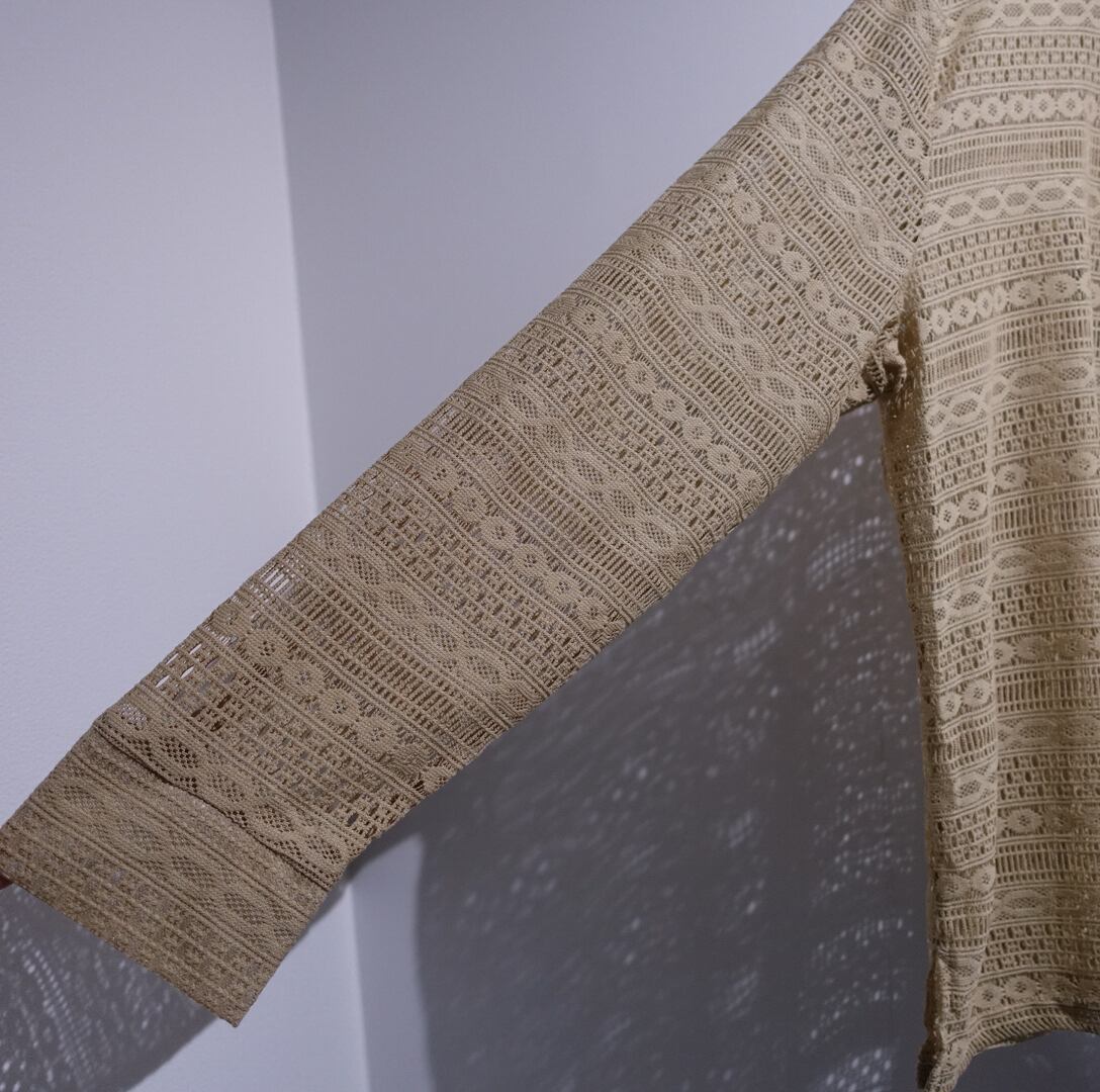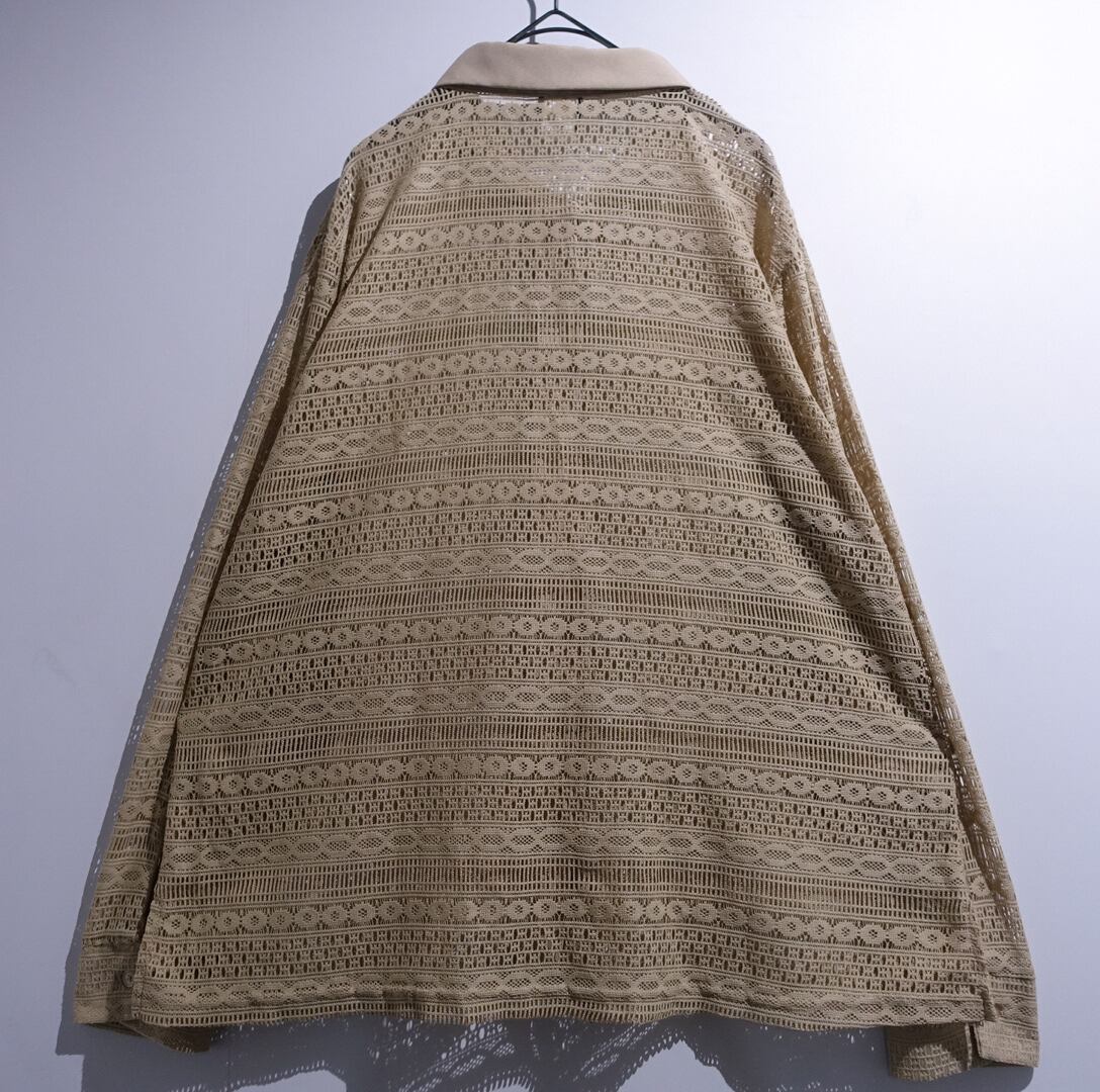 Beige Geometric Pattern Design Mesh Shirt