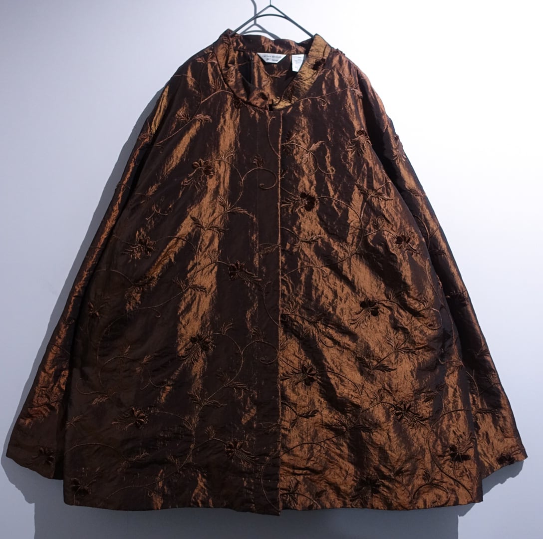 "LAURA ASHLEY" Brown Botanical Velour & Embroidery Design Jacket