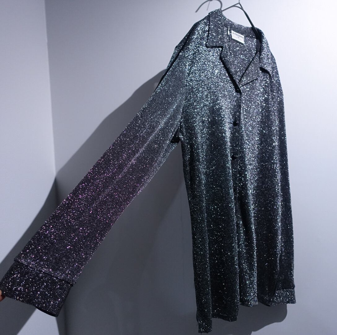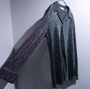 90s "ALFRED DUNNER" Grey Lame Design Open Collar Shirt