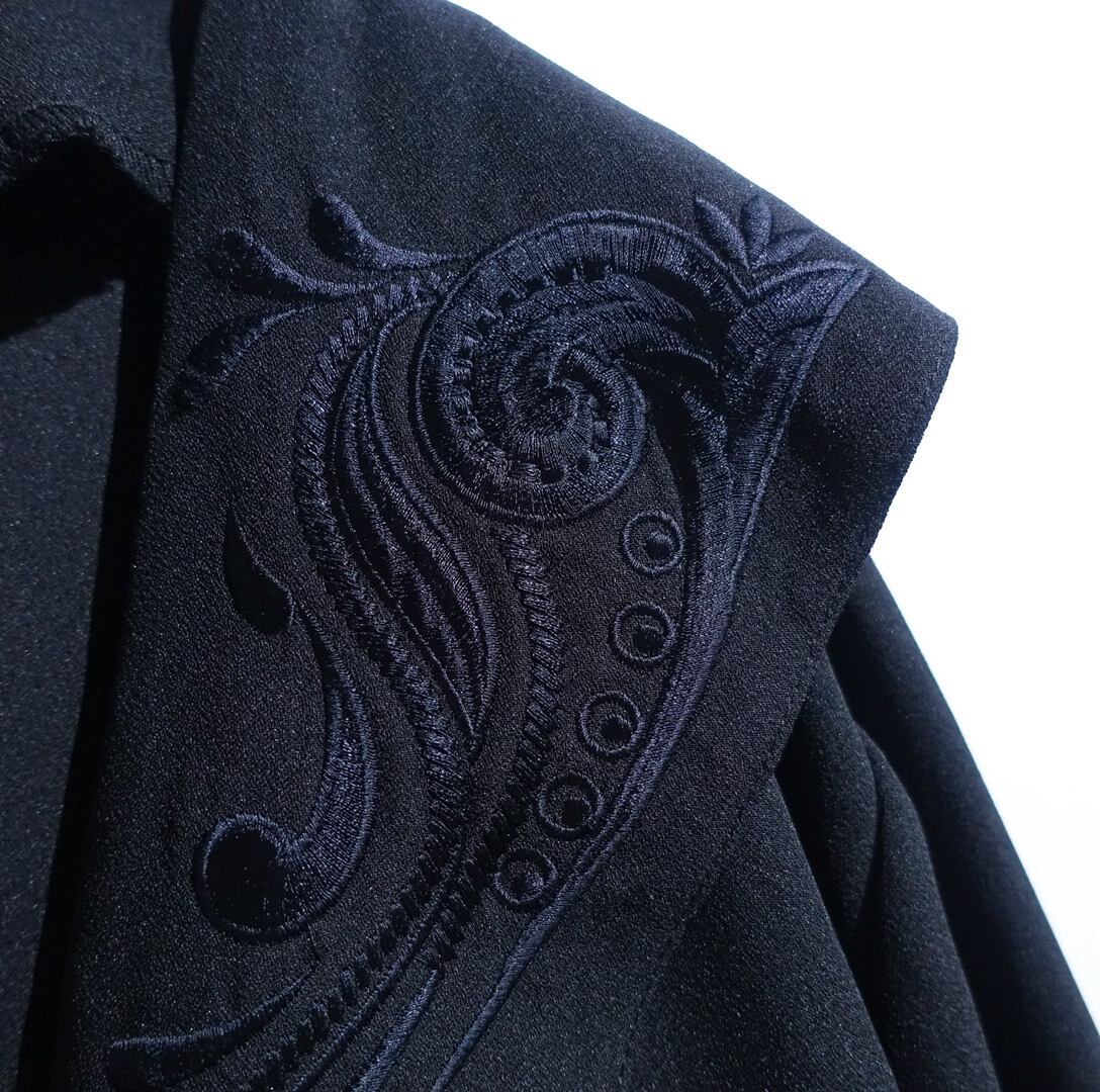 Black Ornament Motif Embroidered Design No Collar Jacket
